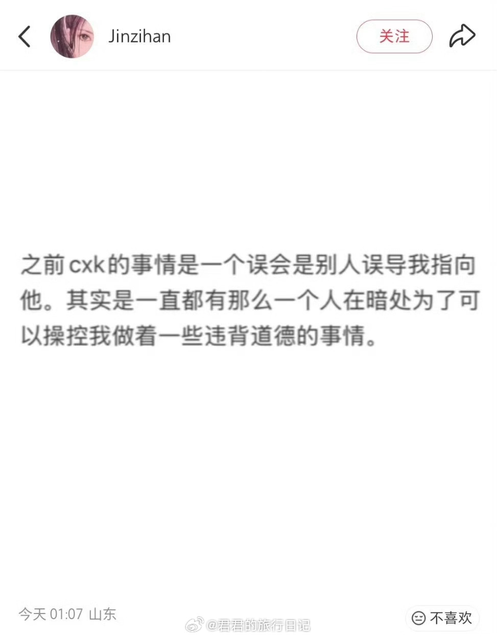 金子涵深夜发了几条内容