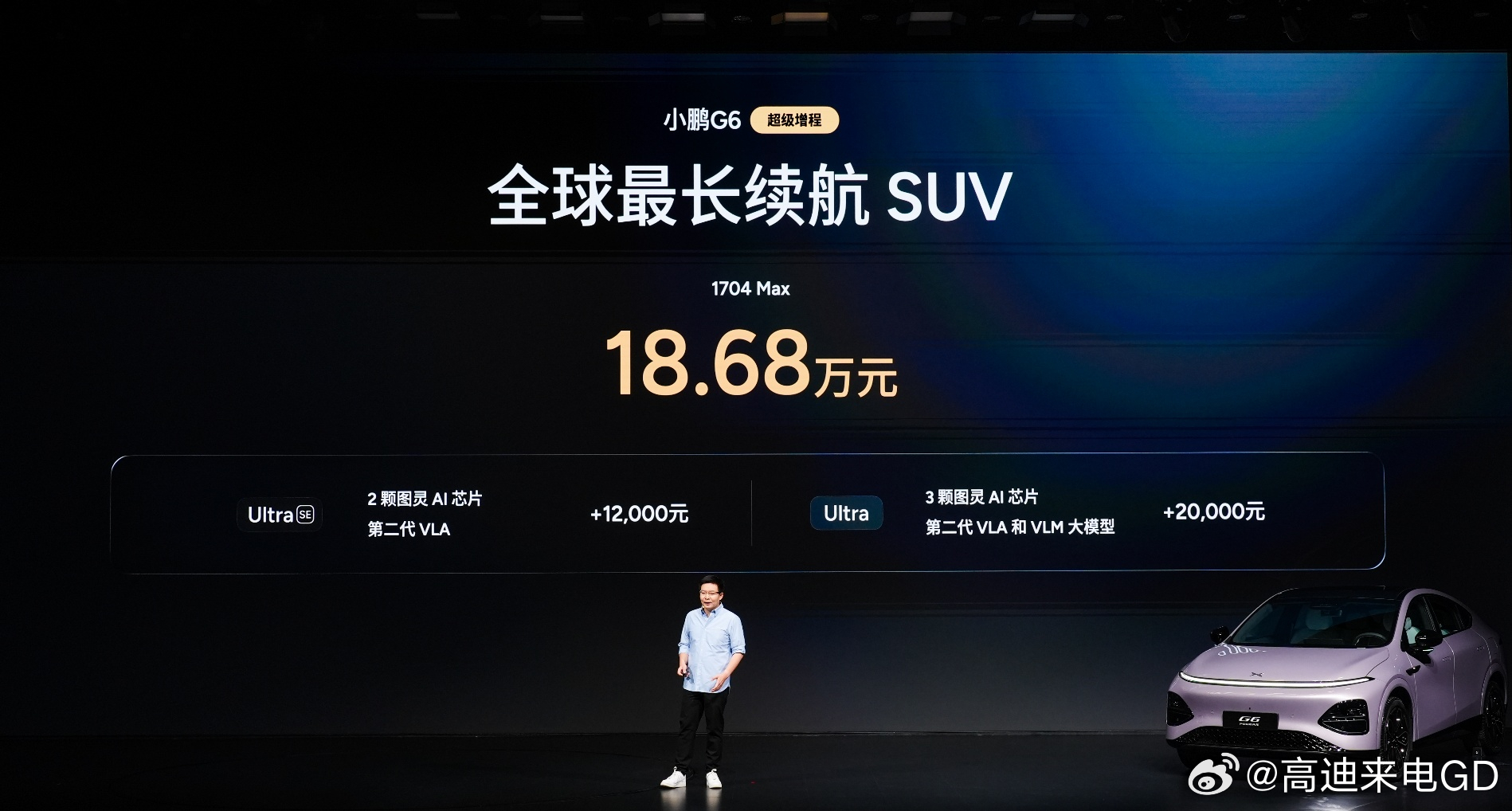 小鹏G6超级增程正式入市:18.68万有1704km超长续航+800V 5C闪充+高阶智驾基础;加1.2万升级Ultra SE,双芯片算力拉满+第二代VLA抢先体验;加2万升级满配Ultra,三芯片2250TOPS算力+顶流智驾直接拉满;三个版本总有一个适配你!