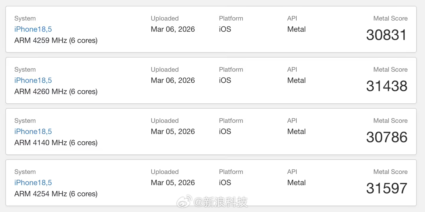 不过由于 GPU 核心被阉割,iPhone 17e 的 Metal 图形性能大约是 31000-31500 分,明显低于 iPhone 17 标准版的 37000 分。(IT之家)
