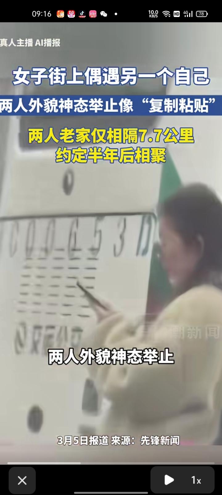 2月26日,河南洛阳。董女士在路边偶遇一个女孩,两人外貌、神态和举止宛如复制粘贴,家人朋友直呼分不清。 因为没留联系方式,董女士直播寻人,三天后终于找到这位撞脸姐妹,巧合的是两人老家相隔7.7公里,常赶在一个集市却从未碰面。对方在新加坡读博,两人约定半年后回国相聚。 董女士称,虽无血缘,却似天赐的缘分,也许平行时空里真的有另一个自己在认真生活。 这些共同的经历,就像一颗颗珍珠,串起了她们之间的情感纽带。当她们发现彼此如此相似时,这种地域带来的亲近感就会油然而生,让她们更容易建立起深厚的友谊。 那些相似的眉眼、相近的故土、交错却未相逢的日常,如一颗颗温润的珍珠,悄然串起了她们之间奇妙的情感纽带。地域的相近、长相的默契,让这份突如其来的相遇,多了几分命中注定的亲近,也让两个素昧平生的人,瞬间拥有了跨越距离的默契与温暖。 人海茫茫,长相相似是巧合,故土相近是缘分,彼此惦念是心意。这场毫无预兆的相遇,打破了血缘与时间的界限,让两个陌生人在茫茫世间,遇见了最像自己的那个人。原来世界上真的有这样一种缘分,不必相识已久,无需血脉相连,只一眼相逢,便胜却人间无数,成为彼此生命里最温柔的奇迹。