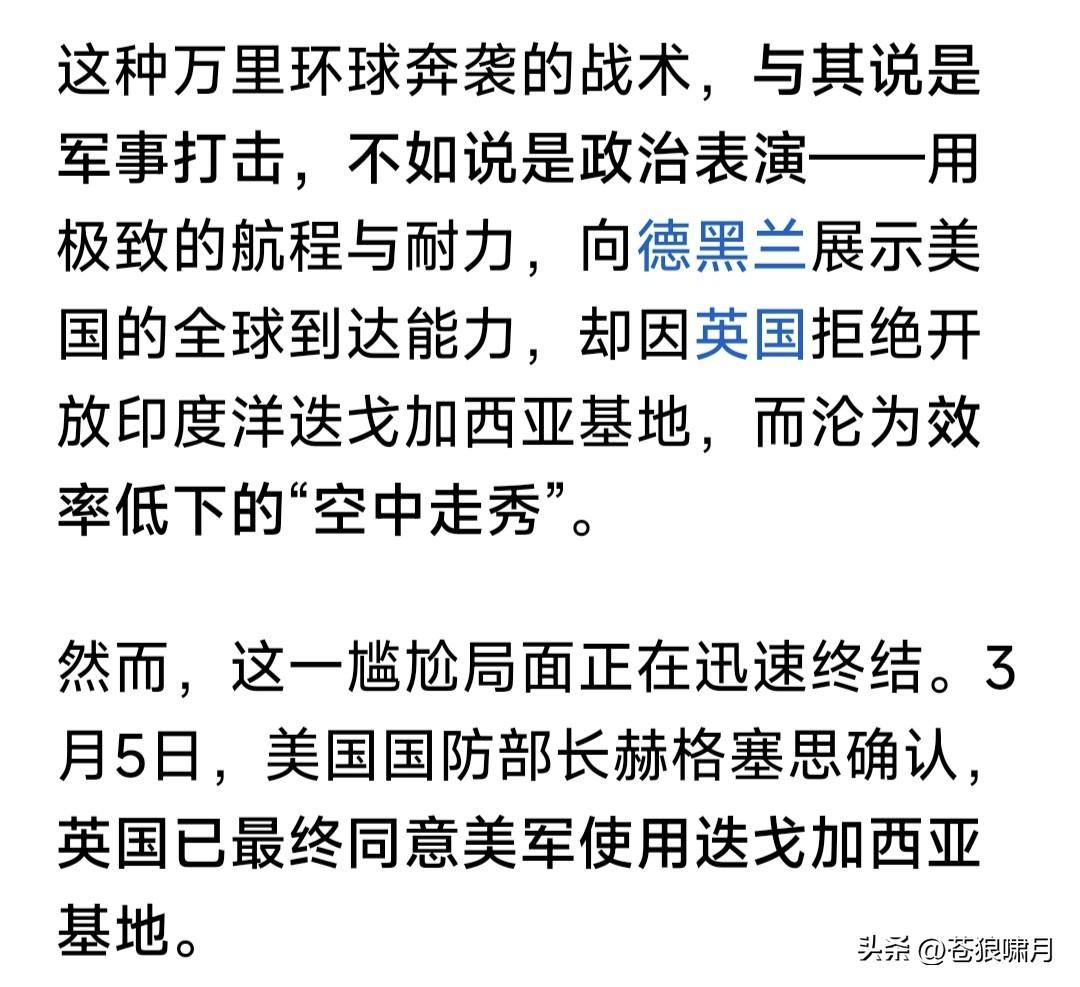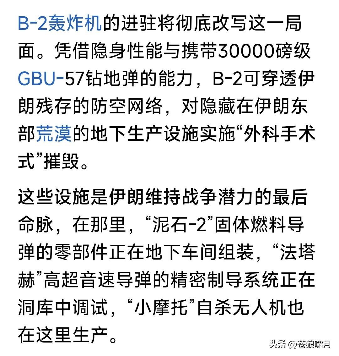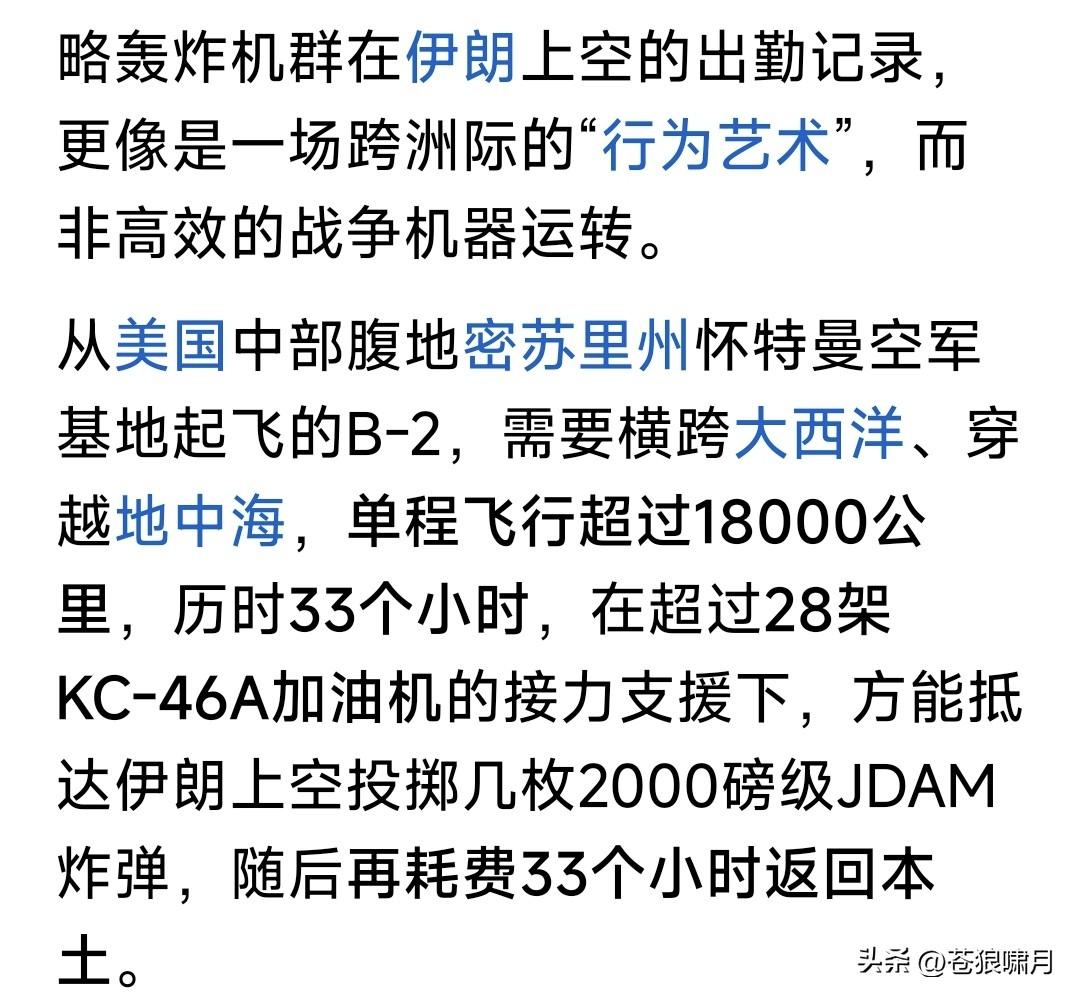 美以发起“灭国大轰炸”,伊朗9千万人进入“最艰难时刻”!看到此言吓一跳,再读网友文章,感觉确实如此。 美伊冲突已多天!自首日炸毁伊朗军政大楼,斩首哈梅内伊与众多高层,之后轰炸一直没停,主要摧毁防空系统与导弹发射装置,又取得明显成效。 媒体报道近两日,伊朗防空火力已基本沉寂,导弹与无人机发射数量,也较起初大幅度下跌。说明不是瞎说。 美防长赫格塞斯声称,美以已夺取伊朗制空权,各种战斗与轰炸机都可在伊朗全境自由飞行,扩大轰炸范围。 这些扩大范围有什么?省以下军政办公大楼,革命卫队驻地,导弹与无人机库及生产工厂,当然还有核设施。 此前担忧伊朗防空系统威胁,主要是以色列战机轰炸目标!现在伊防空火力基本哑火,美轰炸机开始上阵了! 美军远程轰炸机,最厉害是B-2幽灵,B-1B“枪骑兵”,B-52“同温层堡垒”战略轰炸机!是著名轰炸机三剑客。 B-2携带的重磅钻地弹,可穿透60米混凝土摧毁底下堡垒与军火库!B-52携带数十枚制导炸弹,可精准摧毁军政大楼与军事基地!B-1B携带的巨量普通炸弹,可轰炸核设施与军工厂! 目前伊朗虽遭重大损失,但革命卫队与“临时管理政府”仍没服软,表示要反击到底!美以开始全面轰炸,就是给伊朗“去军事化”。看你还如何反击? 美总统川普对美伊战局信心满满,已经在考虑“神权更替”之事!宣称伊朗新政府领导人,必须由他说了算。他的目标也许能实现,但不会那么容易? 眼观美伊冲突局势,苍狼有点焦虑! 无论什么战争,遭难的都是老百姓。还是停止冲突,用政治谈判解决分歧,再打下去,各方损失越来越大啊! 当然反侵略反恐战争除外,因是保家卫国,维护国家安全,人民责无旁贷。但美以打击伊朗,是什么性质呢? 关键是美伊冲突,是打击伊朗神权?还是侵略和干涉主权国家的内政?伊朗反击美以打击,是反抗侵略者?还是维护野蛮神权呢?这个谁能说得清? 不由想到美伊冲突的源头,与之牵连的两场战争:俄乌战争与以哈冲突! 如果说美以打击伊朗神权,是“侵略与干涉”!那发动俄乌战争者,是什么行为?伊朗神权长期扶持“巴也黎”的“哈真胡”反政府武装,是什么行为? 掰扯不清啊!网友给评评理吧? …………