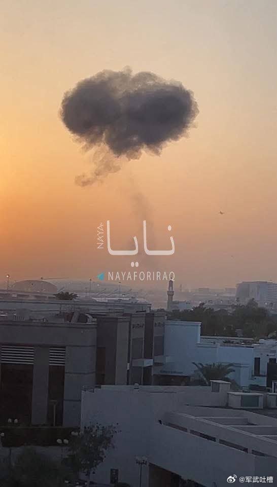 兄弟们,迪拜一处军事基地又被炸了这次炸得挺猛,从城市多个角度都可以看到燃起的小型蘑菇云伊朗无人机击中美军基地画面美伊以冲突伊朗导弹袭击以色列最大机场