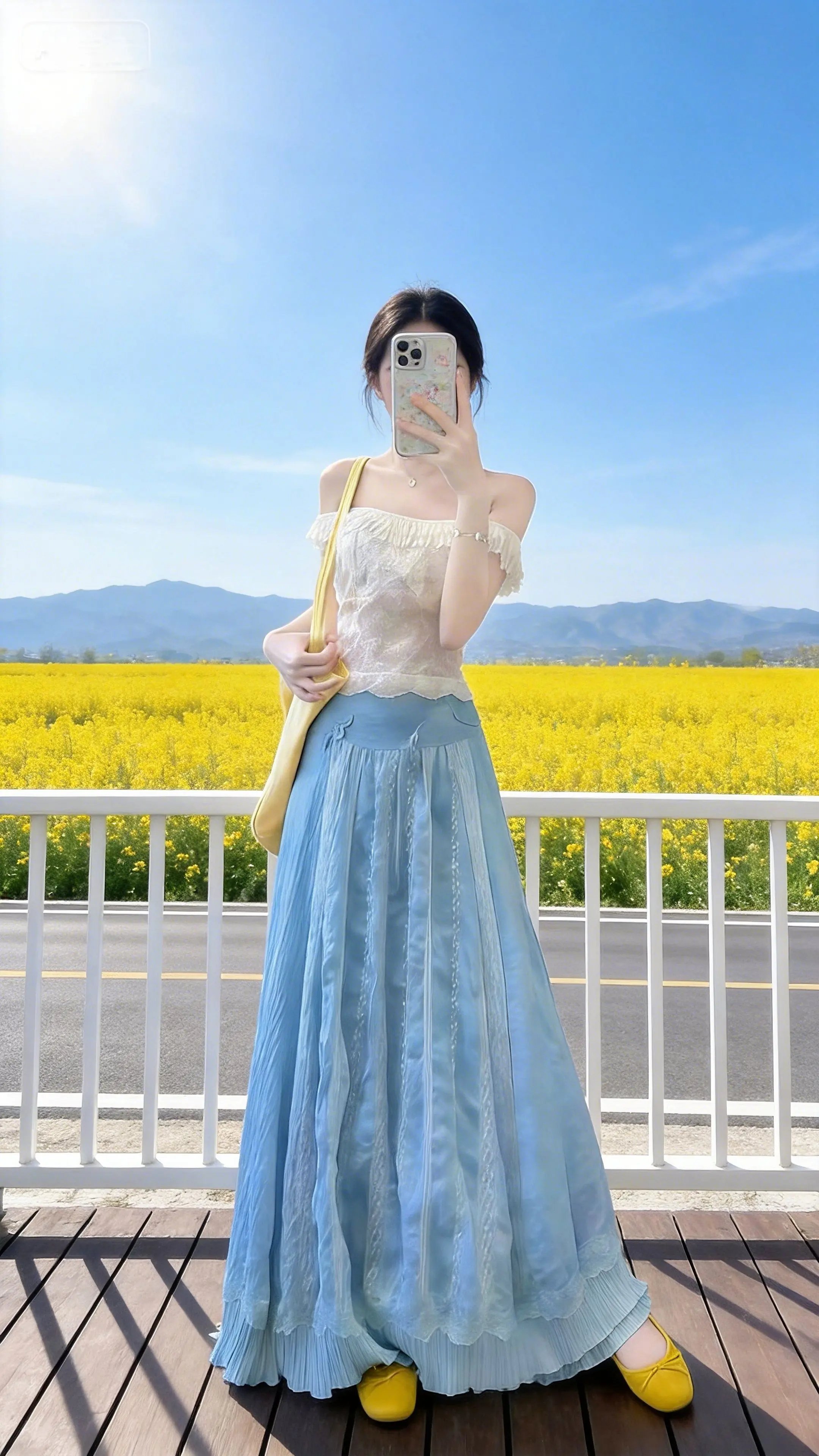 谁懂啊!在油菜花田里穿蓝裙子真的太出片了!