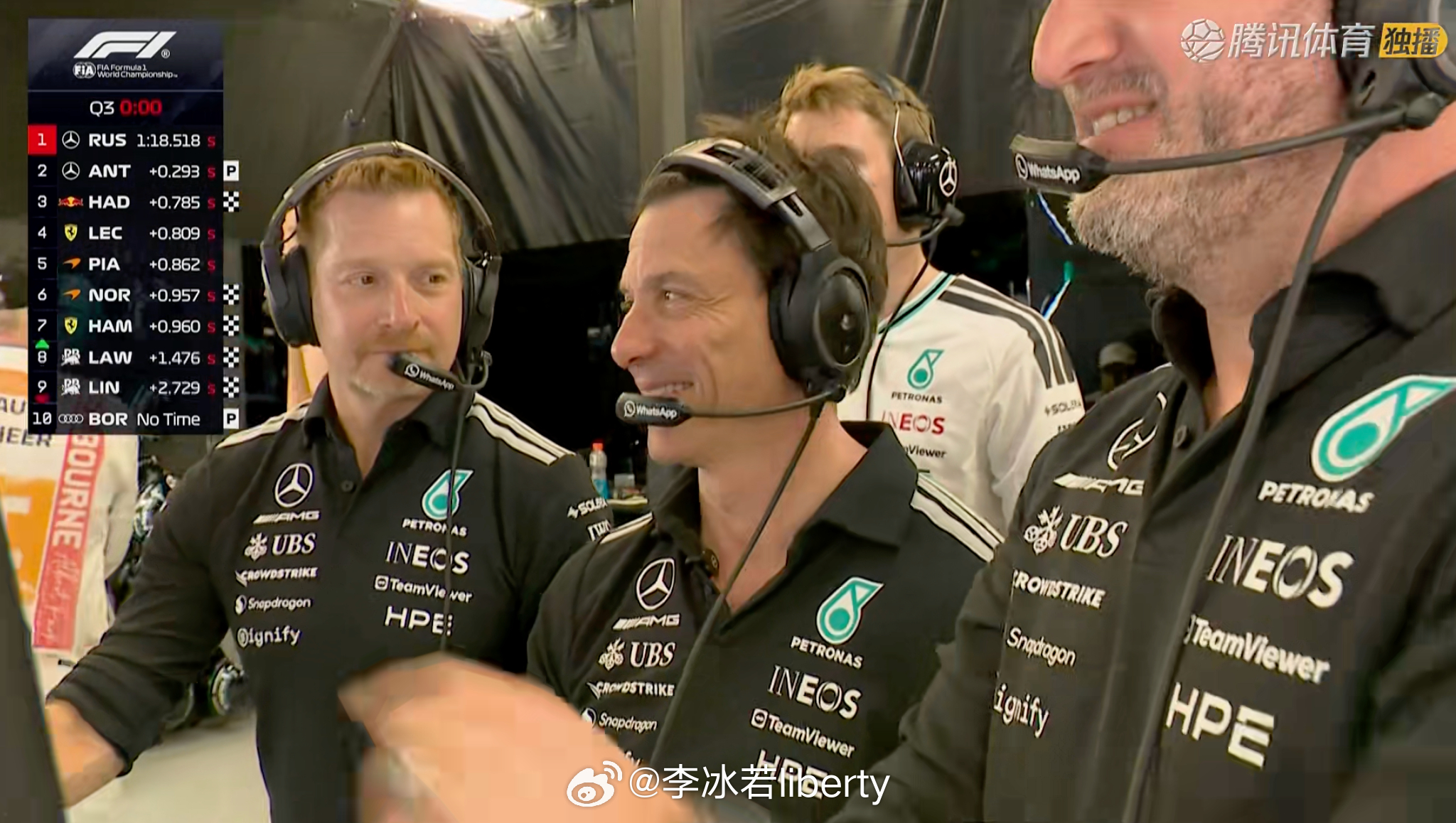 是真的快久违的三叉星杆位今年梅奔动力单元可以窝法和法拉利呢车手能力发威拿了不错的名次另外排位赛来看中游车队和头部差距还是挺大的Toto你终于乐了!熬出来了!2026F1澳大利亚大奖赛