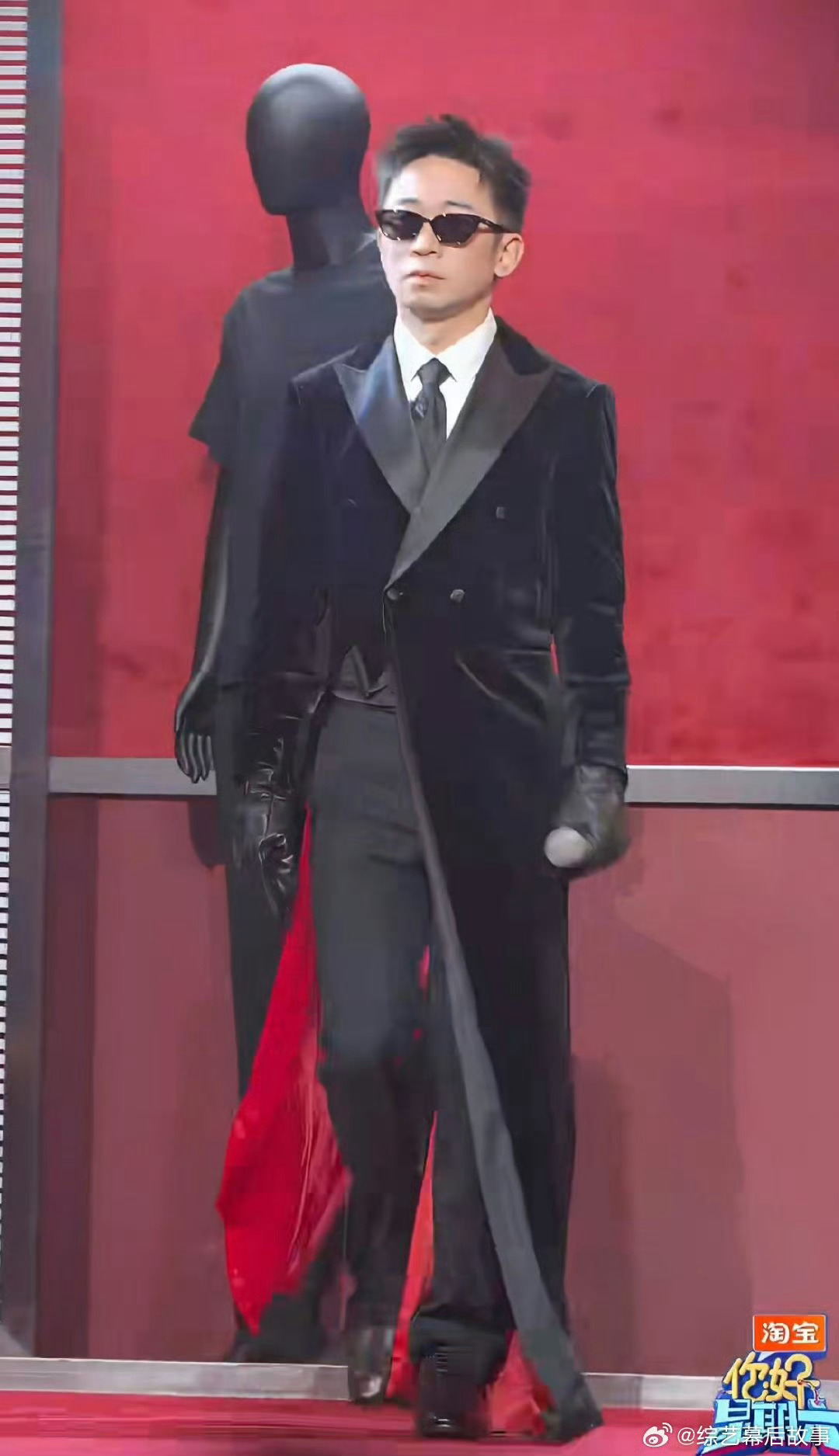 杨迪cha了张凌赫进行曲杨迪复刻张凌赫跨年走秀,黑西装一穿气场足,努力还原步伐,