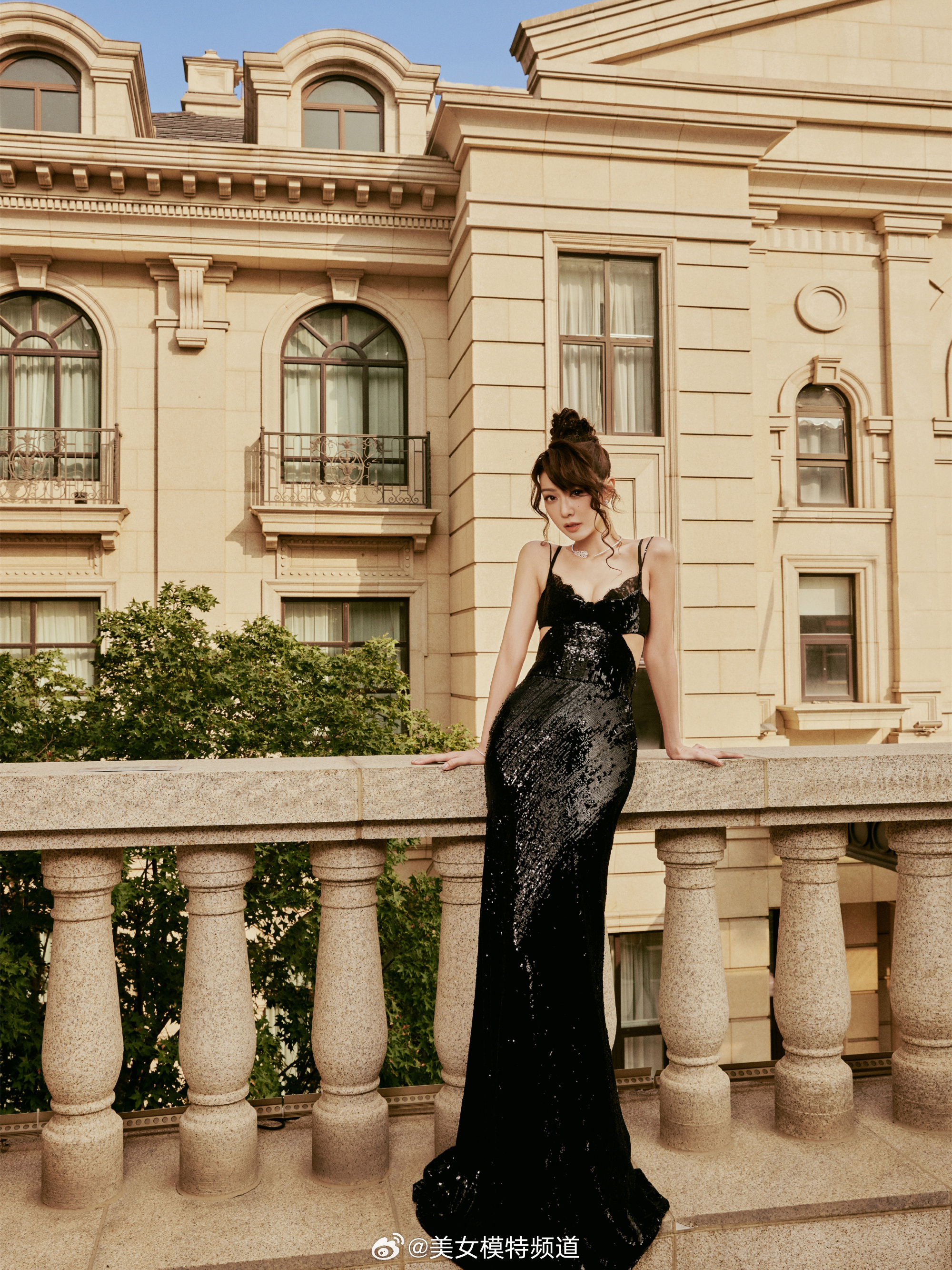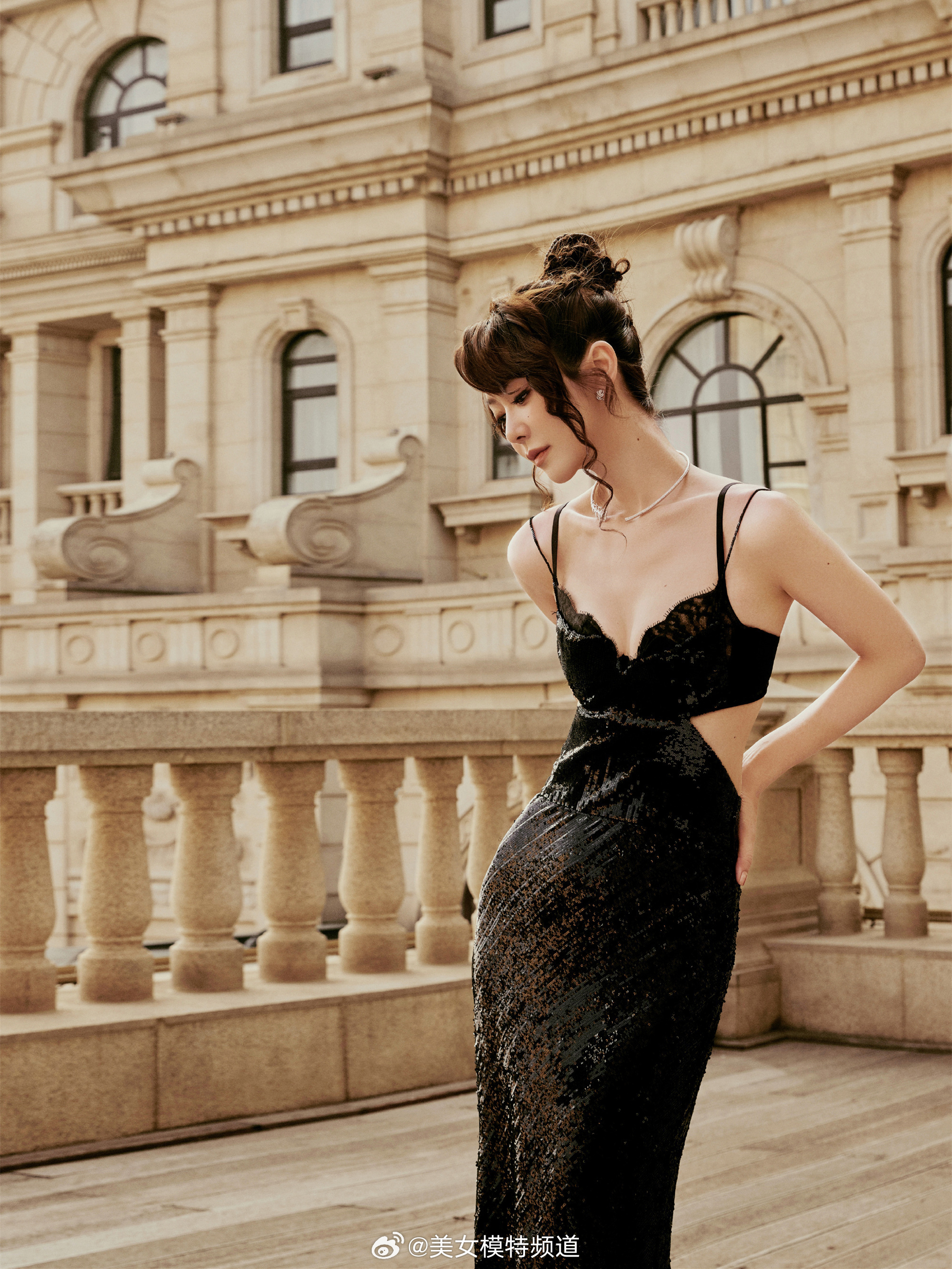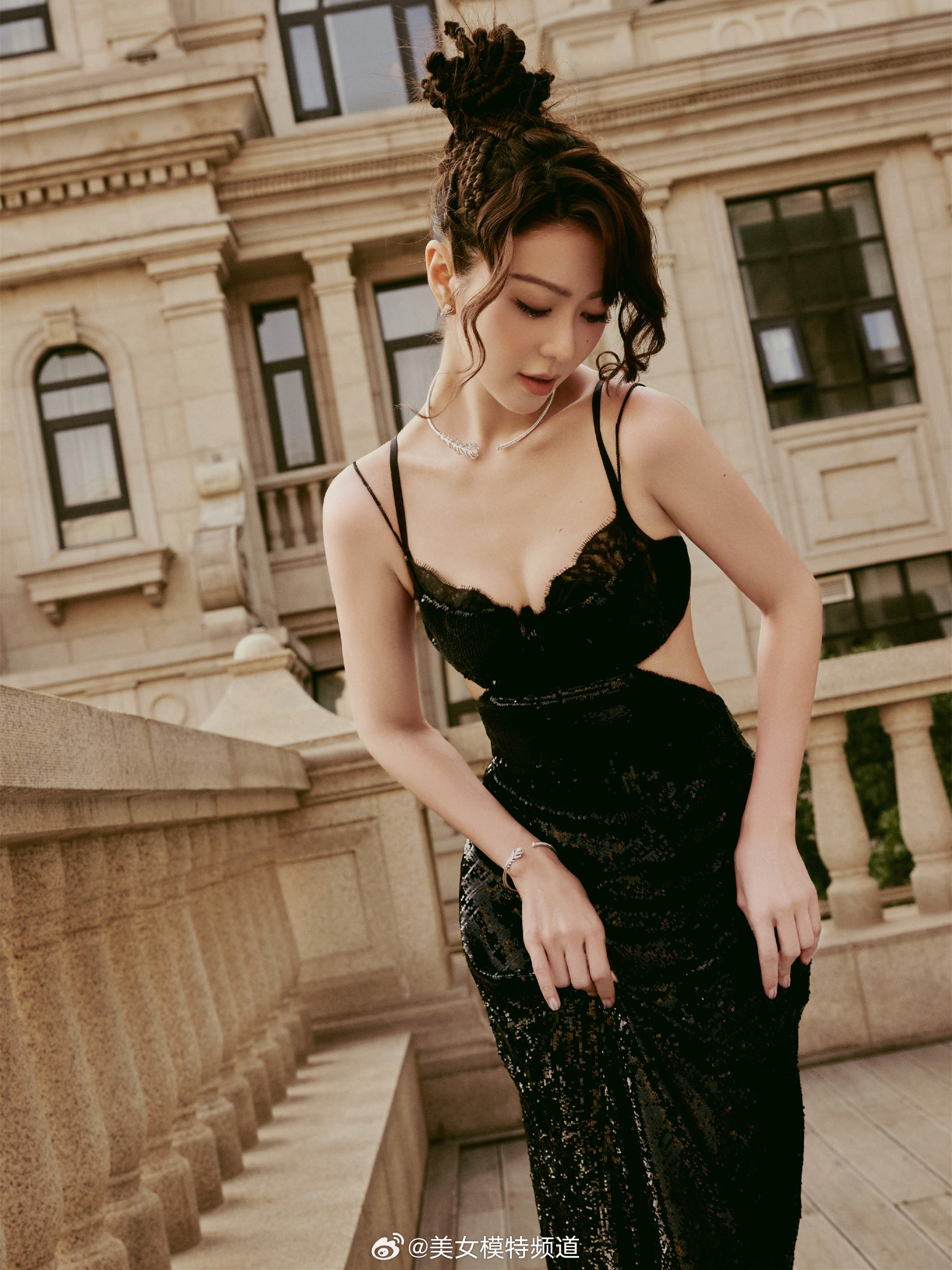 薛凯琪黑色吊带裙粼光闪烁