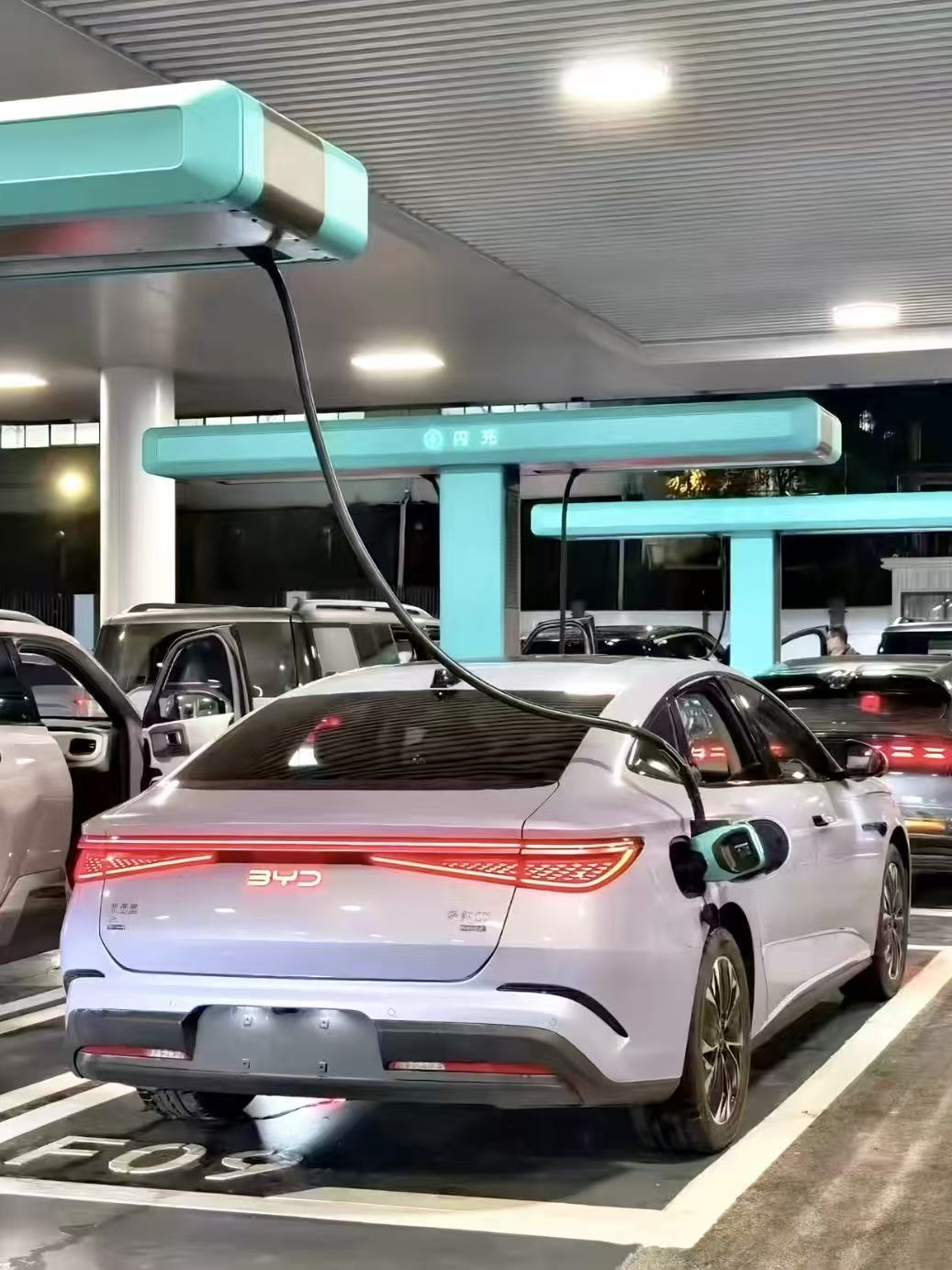 这速度也太快了吧!5号才开的发布会,现在我们这不起眼的十八线小县城里也开始有闪充桩了! 就在前天,比亚迪发布了第二代刀片电池及闪充技术,说是可以“5分钟充好,9分钟充饱”。与此同时,比亚迪宣称还将在年底前落成20000座闪充站,其中,18000座在城区,2000座“闪充高速站”则是覆盖近三分之一的高速公路服务区,实现每隔100多公里就有一座。 说实话,比亚迪的闪充桩建设规划还是很吓人的,但没想到的是,它的推进速度可以这么快,就在今天,我才发现在我们楼下不远的地方已经有了“T”字桩。 那么接下来说说我对比亚迪闪充桩的实际体验吧: 首先充电速度肯定没得说,虽然我的车子比较老,但根据网上车友们的实测,单枪最大充电功率可达到1500kW。 再者,虽然充电功率很高,但线径却比传统快充桩细了近一半,给我的感觉线径也就比一元硬币稍微粗一点点,使用起来省劲了不少。 第三,“T”字桩的设计很有想法,它让充电线不再接地,既保证了线缆的干净也不会再弄脏衣物。另外,充电桩两侧还布置了滑轨,无论充电口在那一侧都能方便充电。 最后,比亚迪闪充桩自带储能系统,不会和周边的居民抢电用,这一点考虑的也算周到。 在我看来,比亚迪这次用硬核闪充技术树立行业新标杆,接下来第二代刀片电池要成市场上的香饽饽了!