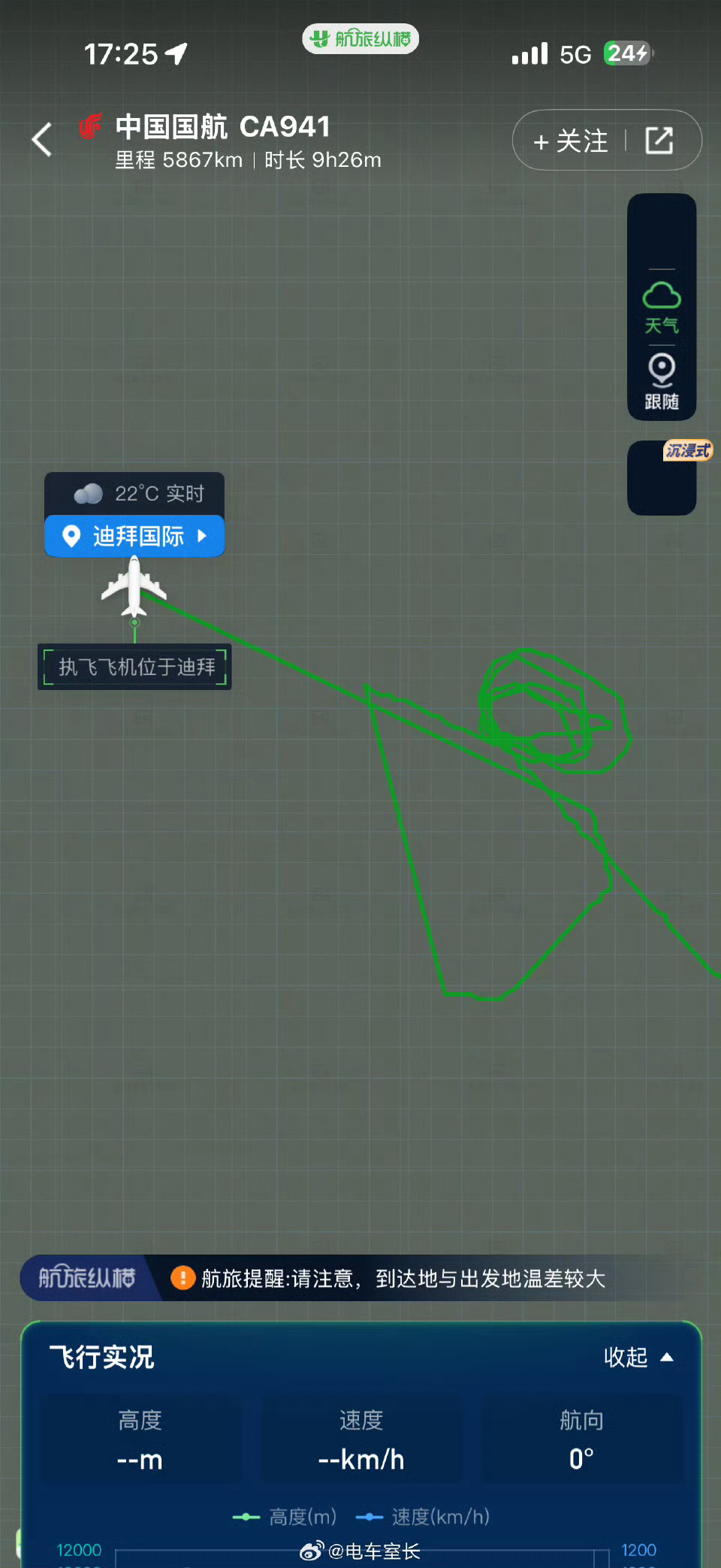 迪拜国际机场紧急疏散旅客这是今天凌晨北京飞迪拜的航班—国航CA941这是绕了多少圈…还好最后平安落地了