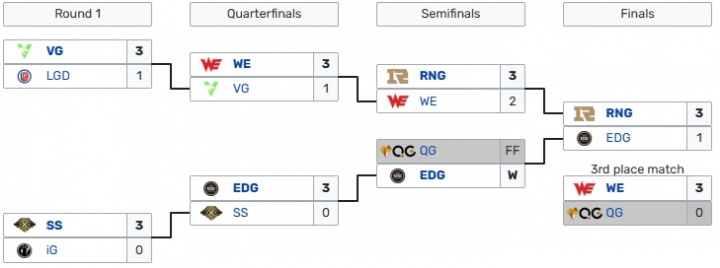 赛事分别为:AL3-0WE、WBG3-0iG、BLG3-0NIP、TES3-0WE、BLG3-0WBG、JDG3-0WBG;
