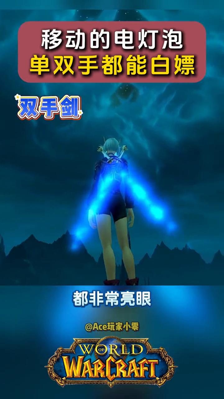 移动的电灯泡,单双手都能白嫖。 今天给大家安利两把蓝色光剑,几乎点击就送。不论是别在腰间,还是背在背上,都非常亮眼。再搭个附魔幻象,粒子光效直接拉满,让你瞬间变身移动电灯泡。怎么搞?超简单。 ·1、魔焰长剑(单手)。去TBC的奴隶围栏刷普通模式老一就行。时光服选手还可以直接去东瘟疫大教堂(81,60)做5个任务,同模型的"银色复仇者"轻松白嫖。 ·2、轻灵佩剑(双手)。就更省事了,建个联盟侏儒战士,在诺莫瑞根做10分钟新手任务就能稳拿。进入幻化收藏后,联盟部落就都能用啦。