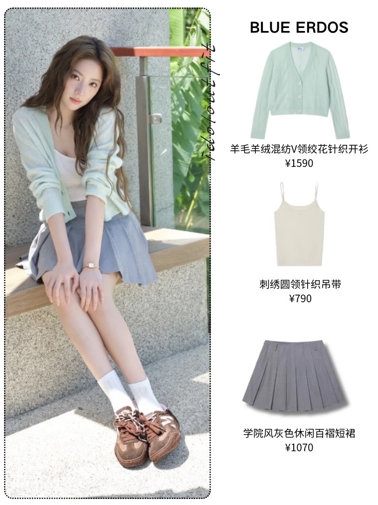 孙乐言这套BLUE ERDOS羊绒穿搭直接戳中我心巴💘满是爱心刺绣的心愿针织两件套,软糯的羊毛羊绒面料,贴肤又轻盈,满屏都是春日呼吸感✨内搭白衬衫背心+藏青荷叶边短裙,经典学院风拉满,层次感超丰富! 欧阳娣娣这套奶fufu的羊绒穿搭也很治愈🌿浅薄荷绿的V领绞花开衫,羊绒材质软糯轻盈,完美诠释早春呼吸感穿搭~低饱和色系的色彩叠穿,温柔又有层次,也是ins上很火的松弛感穿搭趋势,春天穿这套出门,满屏都是生命力💚 欧阳娣娣同款女明星穿搭明星同款羊绒衫羊绒穿搭少女感穿搭穿搭灵感RED明星热力风向标