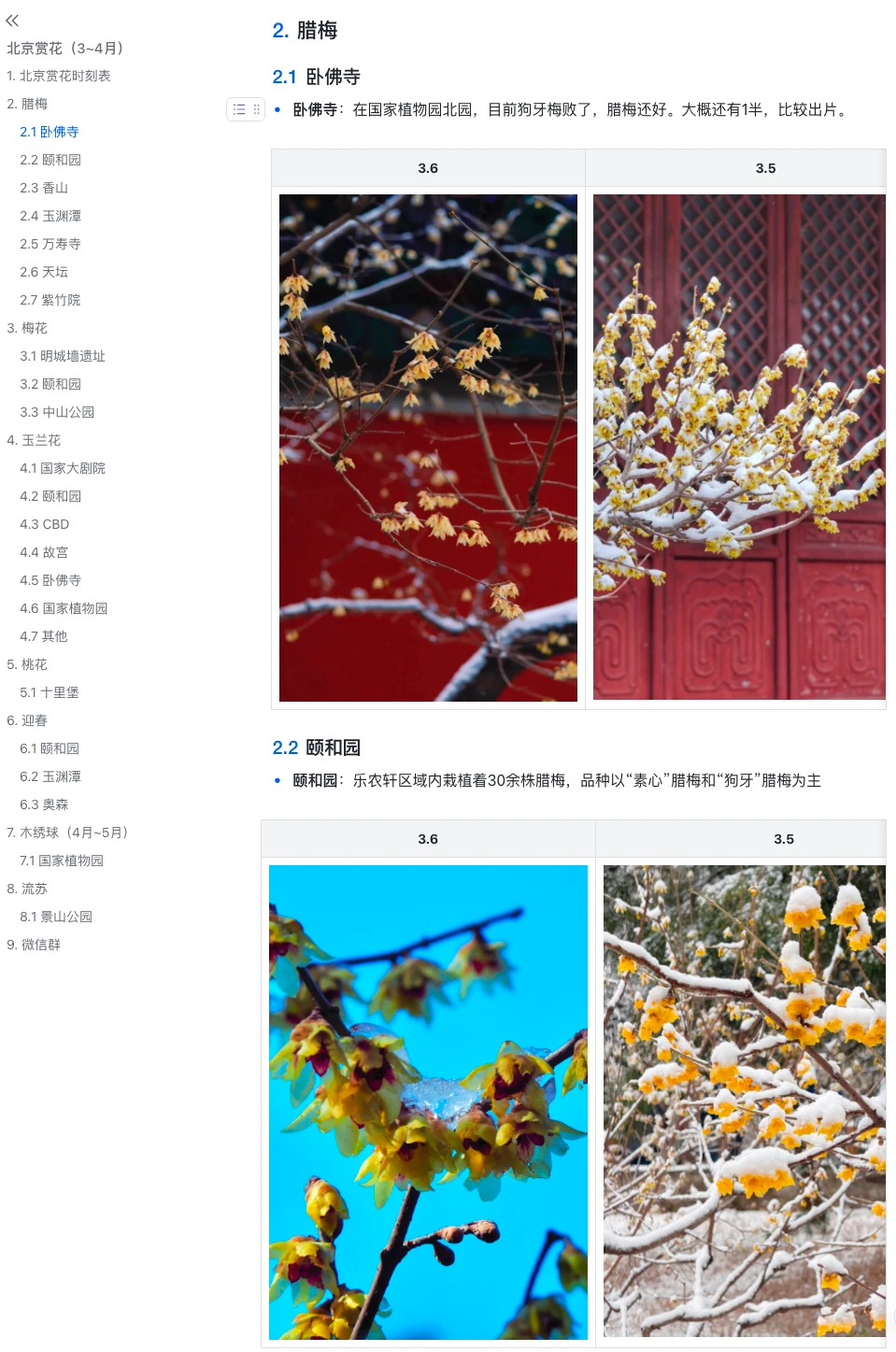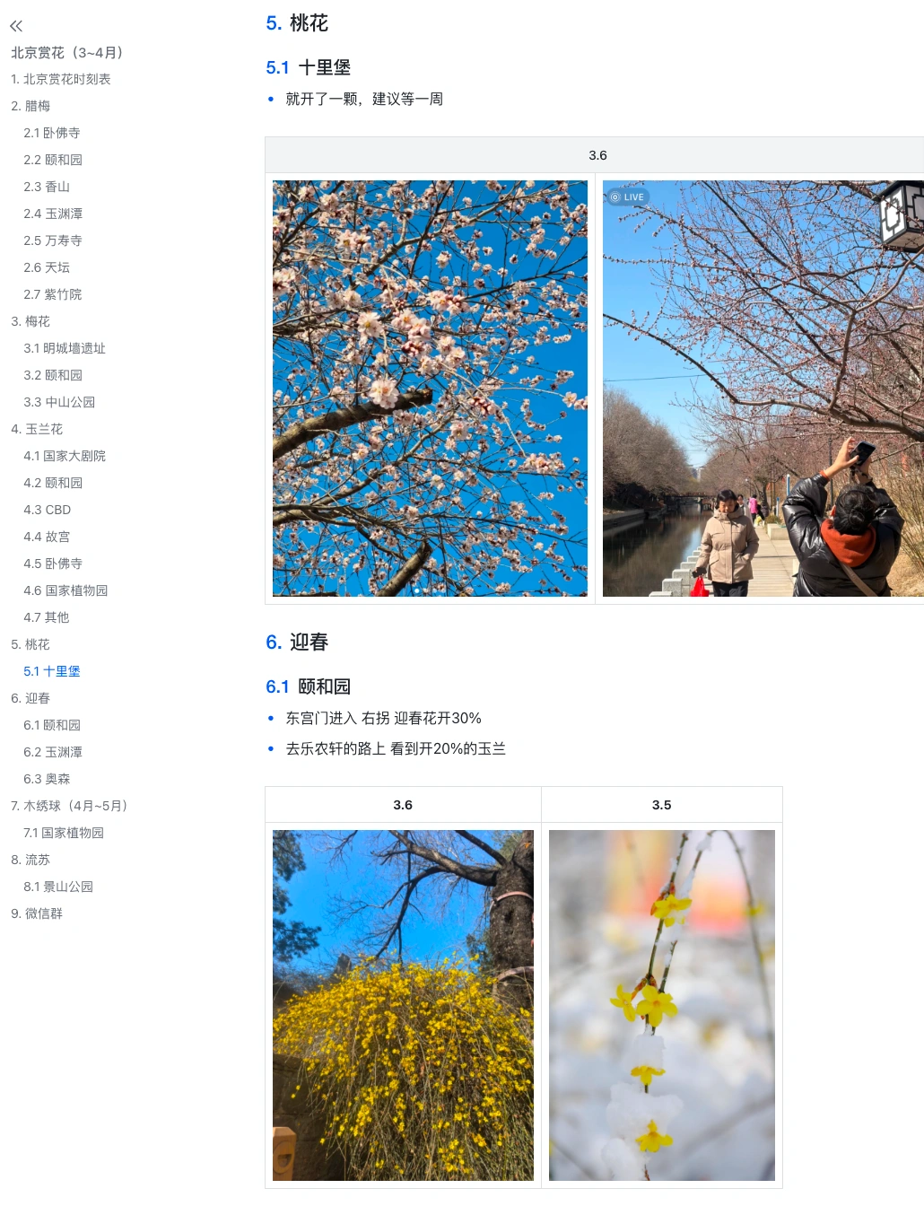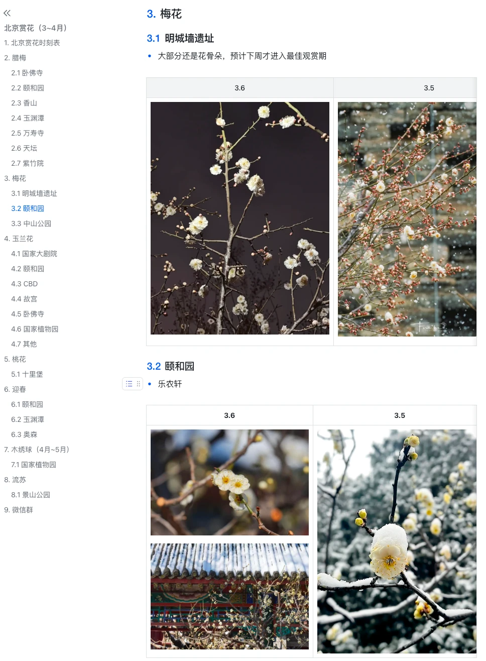 1.颐和园、玉渊潭、奥森等都开了一些
