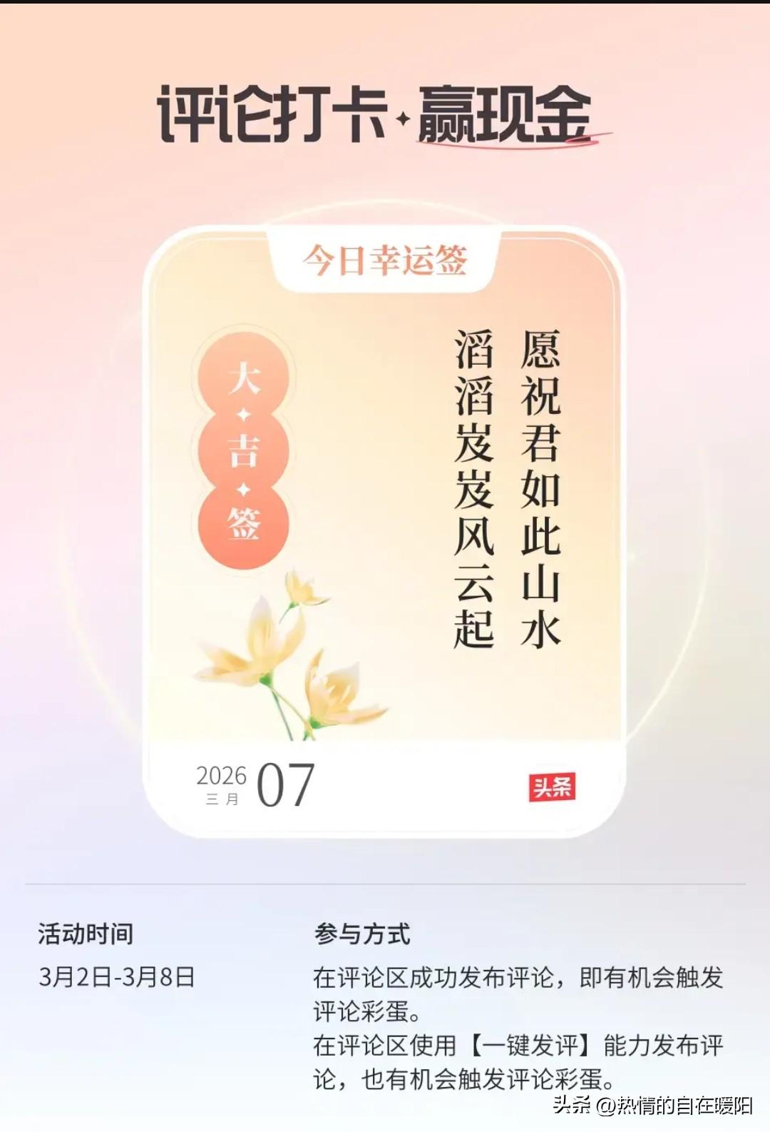 午后 小区人工湖 泛着初春凉凉波光 儿媳拉着孙子小手 陪他蹲在湖边 孙子紧攥渔网 眼里满是“钓鱼”期盼 鱼儿未“上钩” 两个粉紫棉服小姐姐 吸引了孙子目光 她们蹲在岸边 小心放纸船入水 还精心在船里放花瓣 玩了一阵 伸手轻拨湖水 溅起水花与笑声 在空气中散开 忽然 孙子目光被岸边鱼吸引 他停止嬉闹 小眉头微皱 小手轻拉妈妈衣角 声音软却认真说 “小鱼,可怜,它妈妈呢?” 那一刻 我心里暖乎乎 小孩世界无冷漠麻木 只有纯粹共情与柔软 在他眼里 小鱼离去是心疼分别 是有“妈妈”牵挂的遗憾 为纸船开心 为水花兴奋 为小鱼离去心软 这份纯粹温柔 是春日动人风景 是岁月珍贵礼物