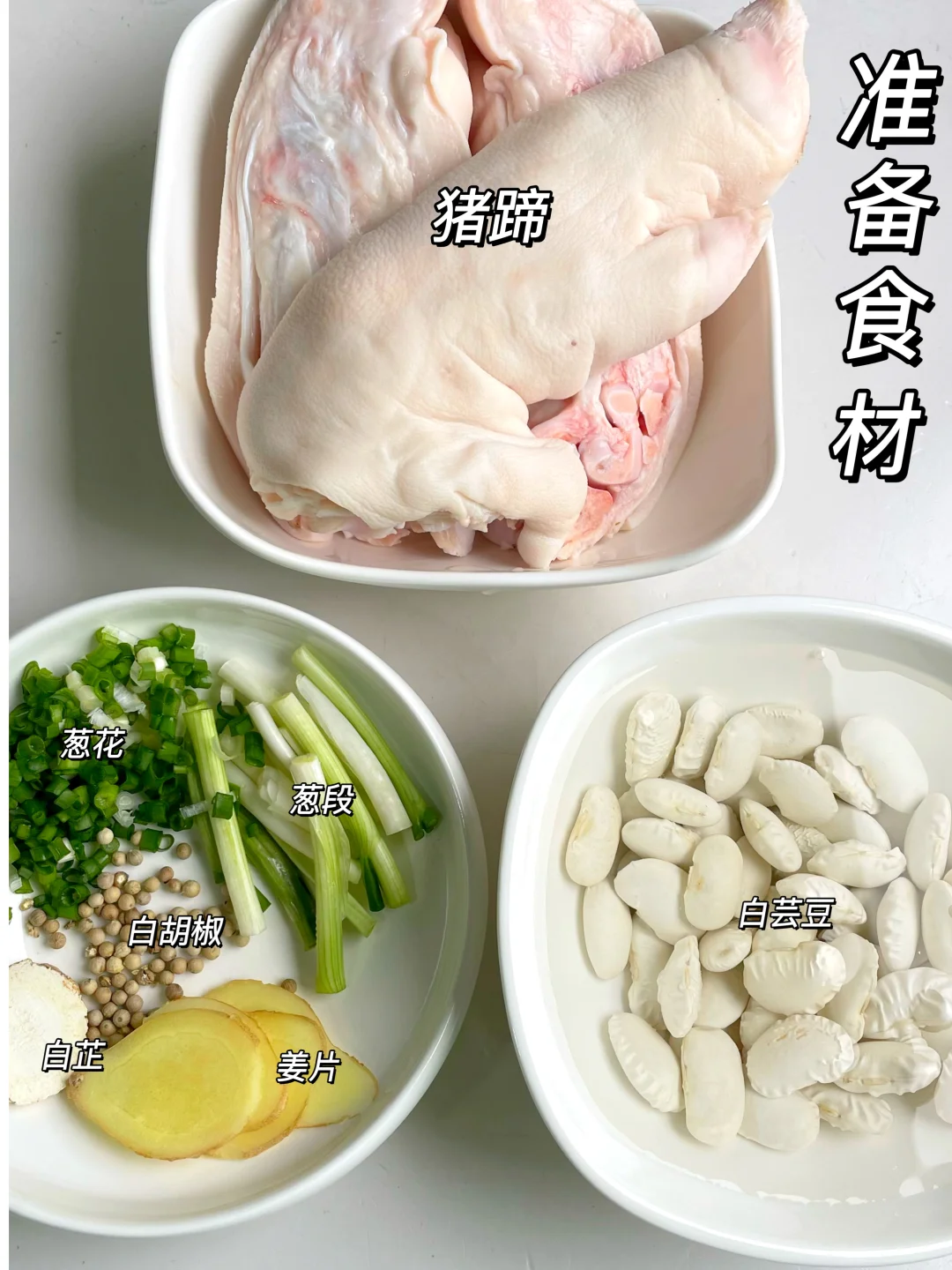 猪蹄2只、干白芸豆100g