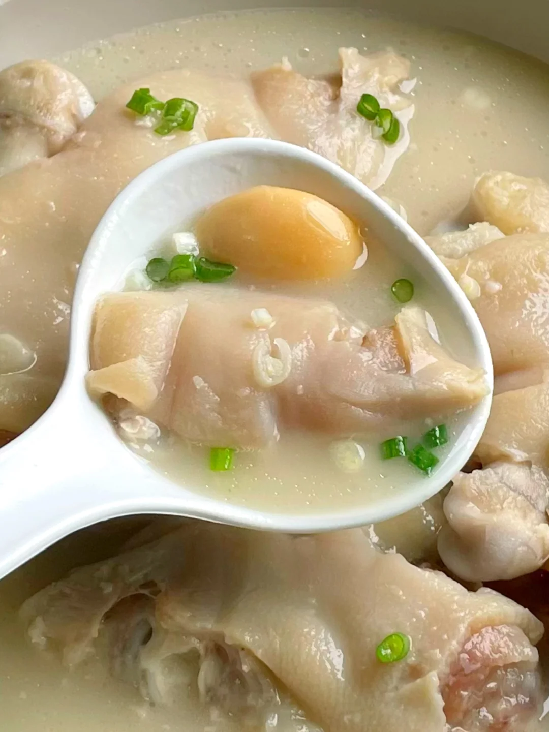汤色奶白醇厚,猪蹄软糯到脱骨