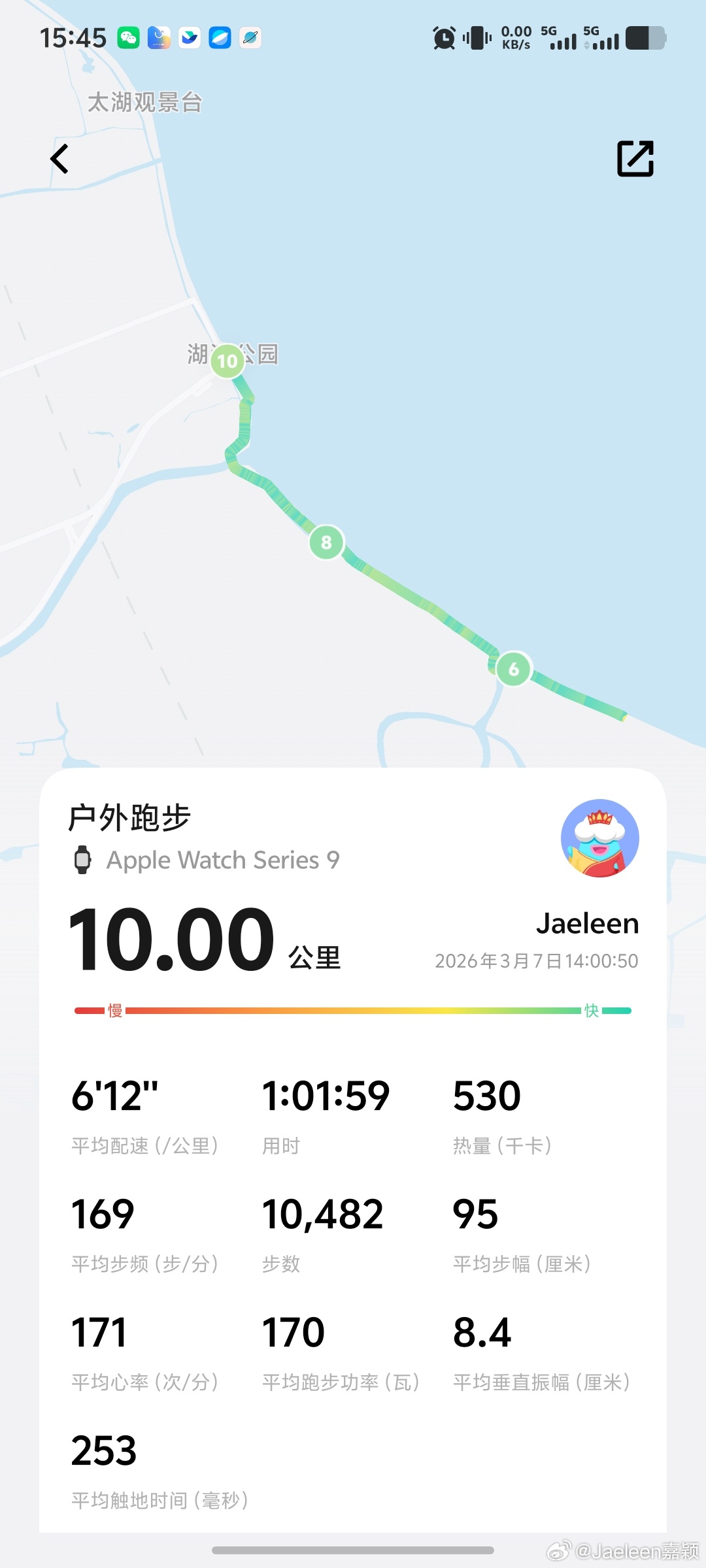 6'12"配速跑了10km已累鼠,结果发现是女生TOP10诶!开心!