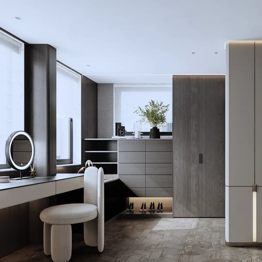 五百平别墅,意式轻奢。女主人要深色与亮色的对撞,再加点木色。方案出来,她和儿子眼前一亮:“这是看过最舒服的轻奢效果。”这评价,够我开心一整天。