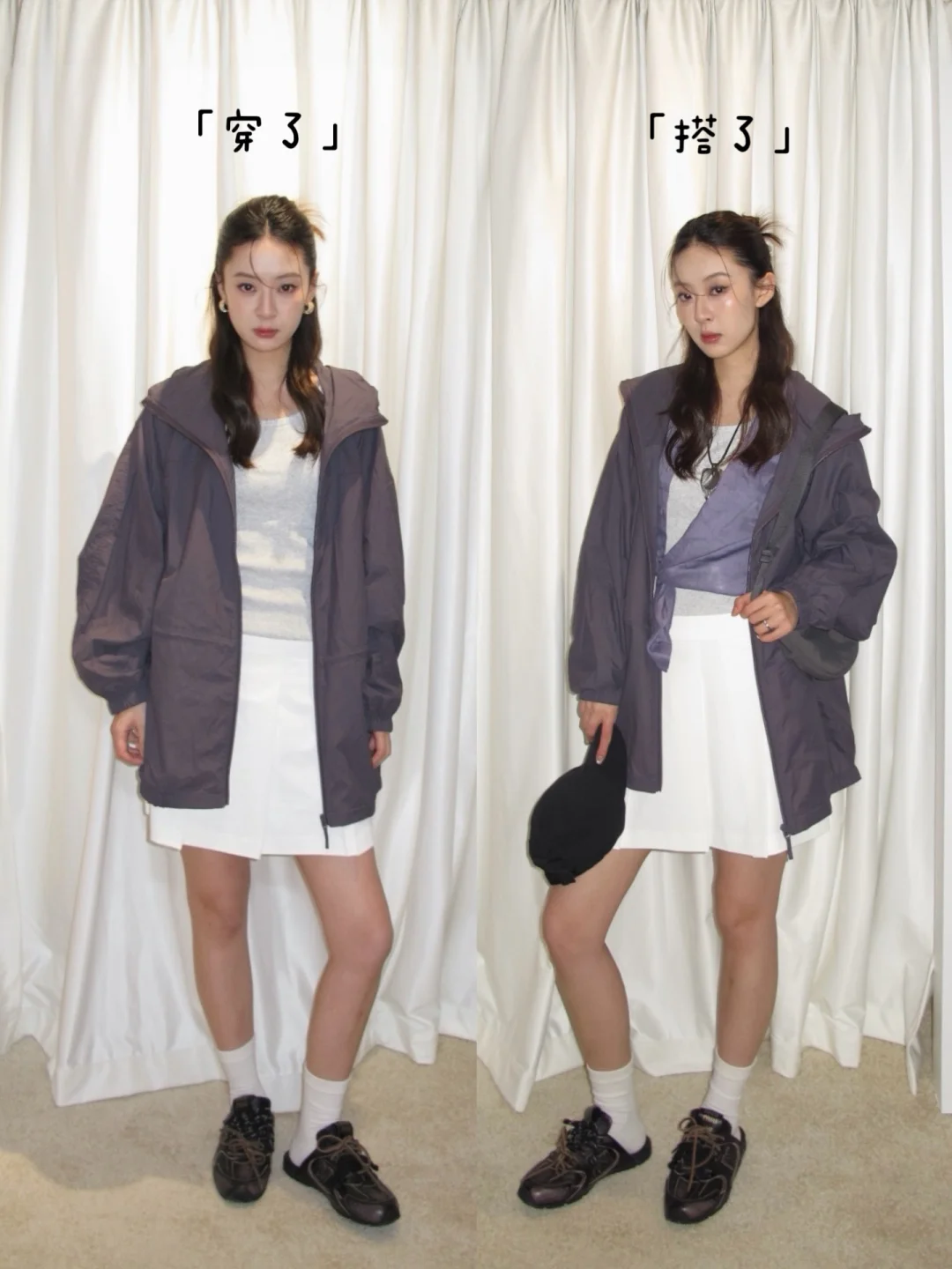 look2☀️穿搭法则:紫色系都市机能叠穿