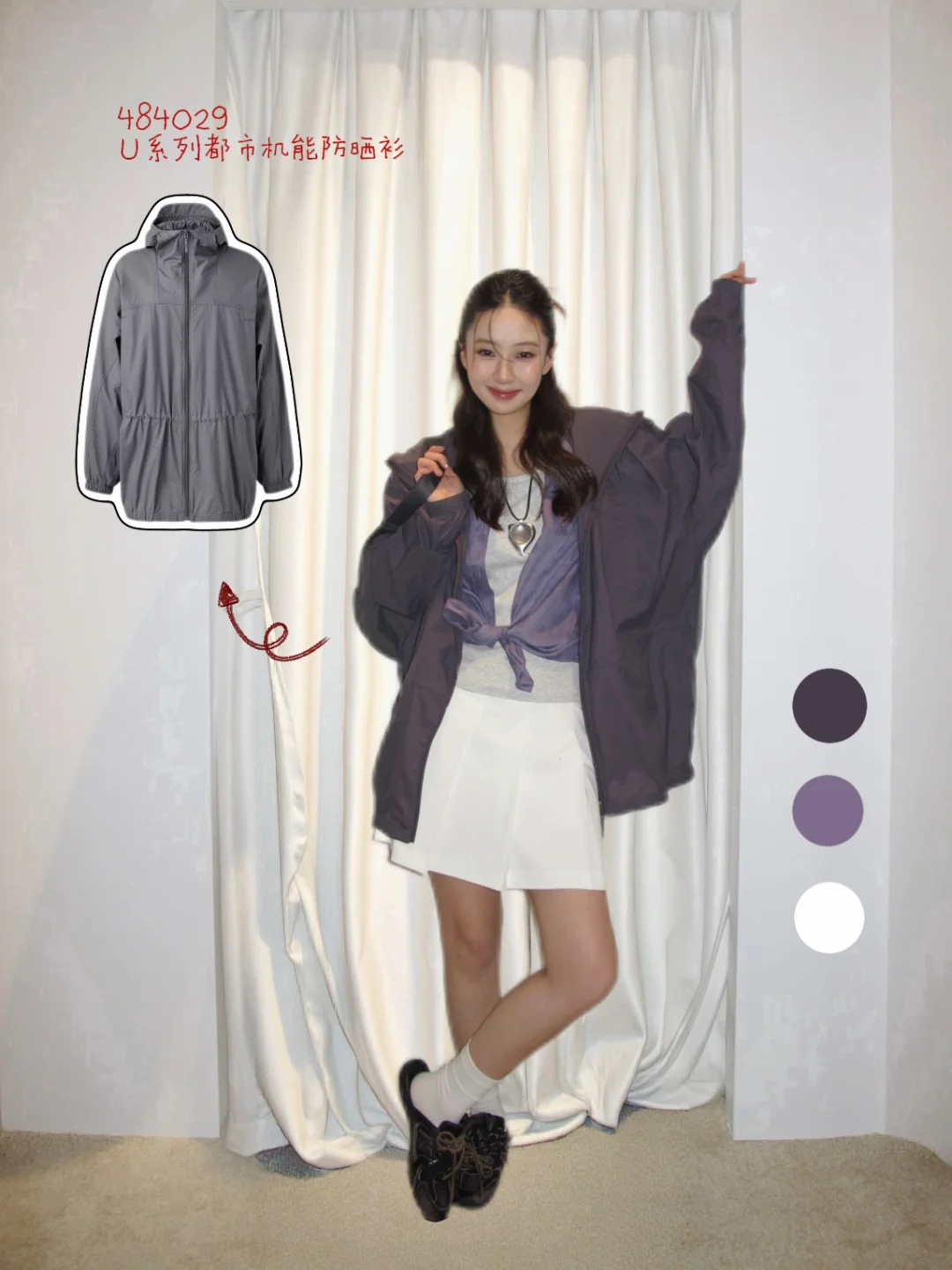 用我喜欢的紫色系定调,虽然是防晒衣也想穿得更优雅~