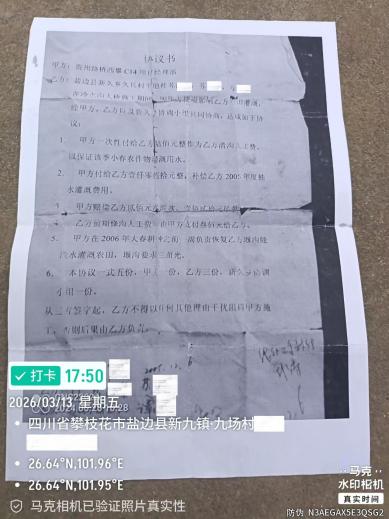 近日,四川省攀枝花市盐边县新久镇村民苏先生反映,当地公路建设项目施工期间,占用其家中农田灌溉水沟,虽承诺及时恢复并给予补偿,但多年过去灌溉设施未有得到修复、补偿未兑现,其父亲与叔公曾因前往询问进展时,与项目方人员发生冲突,后两人出现受伤情况,就医过程中相关费用承担事宜双方存在分歧,多次投诉无果。