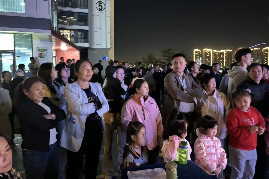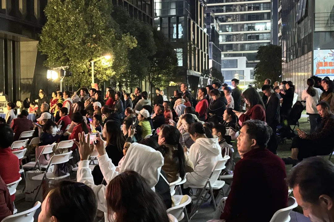 深秋的夜风微凉,但阻挡不了现场的热烈气氛。决赛现场累计聚集了超过300位观众,参赛选手亲友、企业员工、公寓居民化身为粉丝团,手持荧光棒、鼓掌拍,一同为参赛选手欢呼助威!