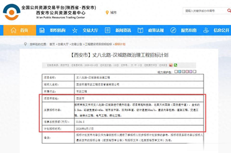 日前,西安公共资源交易中心正式发布《【西安市】丈八北路-汉城路微治理工程招标计划》,标志着这条城西核心城市主干路的精细化提升改造正式启动。