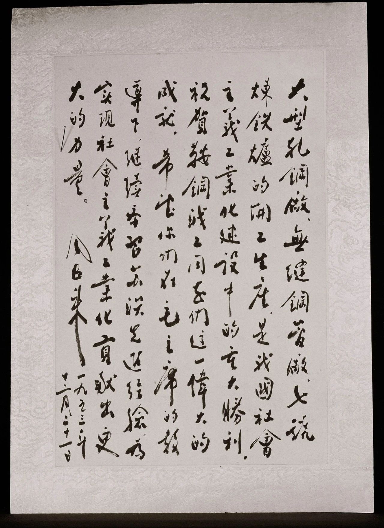 为鞍山钢铁公司三大重点工程开工生产的题词 1953年12月1日 41.5×29.5cm 中国国家博物馆藏