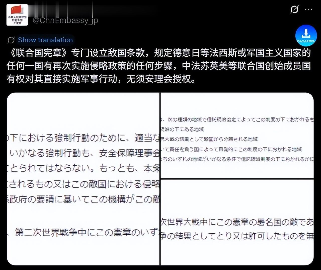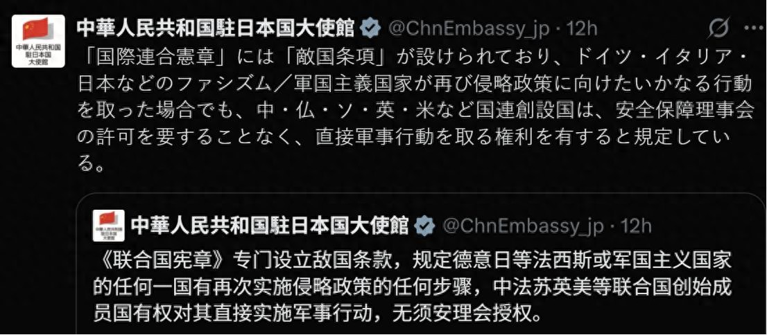 中国致函联合国:如日方胆敢武力介入台海局势,中方将坚决行使《联合国宪章》和国际法赋予的自卫权