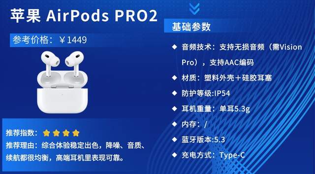 推荐理由:苹果AirPods Pro2定位旗舰降噪真无线耳机,与AirPods Pro(第二代)同源,主打极致降噪、高清音质与生态联动,是苹果用户高端耳机首选,兼顾通勤、办公、旅行、运动等全场景。