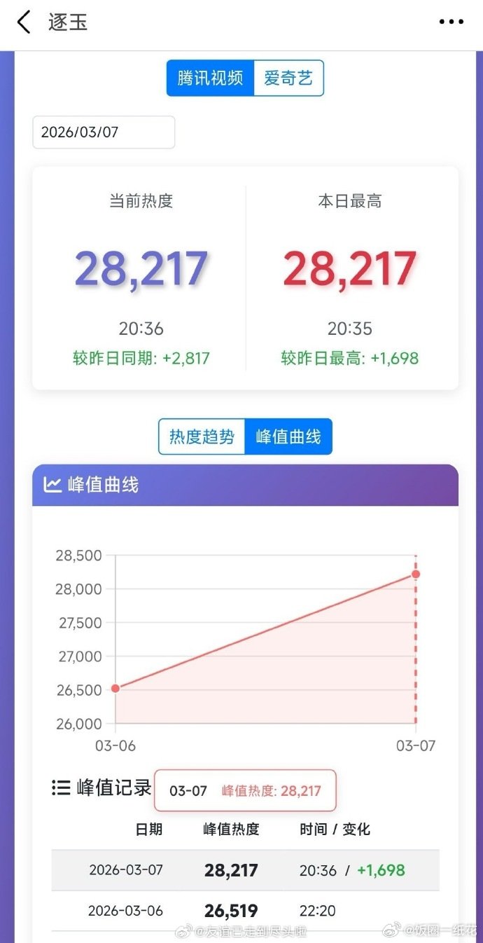 逐玉热度超双平台去年剧王现在的热度:腾讯破28000,爱奇艺破9000,已经超过双平台去年的剧王了逐玉热度超去年双平台剧王