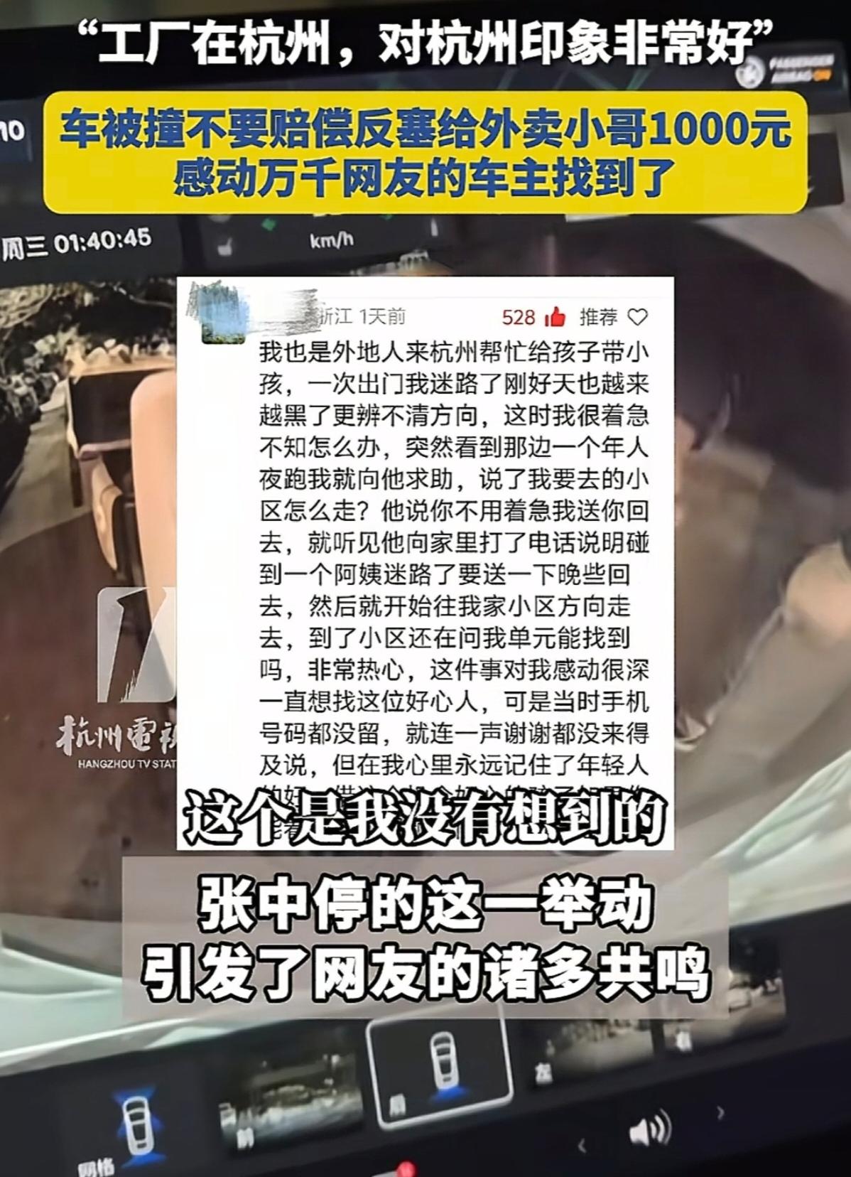 车被撞反赔钱?杭州深夜上演现实版“善良暴击”,外卖小哥泪目:这城有温度!” 凌晨1点,杭州的街头寒风刺骨。20岁的外卖小哥小陈(化名)攥着电动车把,眼皮沉重得直打架。从湖南刚到杭州没几天,他拼命接单,只为多攒点钱。可命运却和他开了个玩笑——路口一个恍惚,电动车“砰”地撞上了前方私家车!车尾灯碎了,保险杠凹了,小陈的脸瞬间煞白:“完了,这维修费够我半个月饭钱啊!” 车主张先生下车查看,划痕刺眼。小陈扑通一声近乎跪地,声音发抖:“大哥,我真没钱!刚来杭州,跑外卖还没赚到钱...我只有400块,剩下的慢慢还,求你别报警!”他颤抖着掏出皱巴巴的钞票,仿佛交出全部尊严。张先生盯着这个年轻人——凌晨还在奔波,异乡漂泊,恐惧到发抖。那一刻,他心头猛地一揪:规则可以索赔,但眼前是个快被压垮的灵魂。 “钱收回去,车我自己修。”张先生摆手,竟从钱包抽出1000元塞进小陈手里:“大半夜跑单,吃点好的!杭州不止有高楼,还有人味儿!注意安全,好好干!”小陈愣住了,眼泪哗啦啦涌出,鞠躬时声音哽咽:“哥...这钱...我咋还你啊?”张先生摆摆手,转身离去。寒夜里,那1000元带着体温,像一束光,烫在小陈手心,也暖进心里。 这故事为啥刷爆全网? 网友炸了锅:“泪目!车主这格局,比西湖水还深!”“我打工时也怕出事,这大哥救了个崩溃的灵魂!”有人感慨:“善良不是施舍,是看见对方血泪后的心疼。”更多人戳中要害:“几千块对富人算啥?对他却是救命稻草!这1000块,比任何鸡汤都硬核,够他记一辈子!” 深挖一层: 外卖小哥的“慌”,藏着多少底层挣扎?凌晨送单、怕报警、赔不起——这是无数漂泊者的隐痛。社会机器轰鸣,他们像螺丝钉,不敢停,不敢错。而张先生的“反常操作”,恰恰撕开了规则的冰冷面:他看见划痕背后,是个年轻人的生存悬崖。他没按“常规”索赔,而是用真金白银托住下坠的命运。这善良,不是廉价宽容,而是穿透苦难的共情,是主动伸出手的担当。 对比现实: 多少事故现场,只剩推诿、争吵、对簿公堂?规则没错,但人不是机器。张先生的选择,像一记“善良暴击”——它证明,在“按规矩办”之外,仍有“看人办事”的温情。杭州为啥被称“最美城市”?不止西湖景,更因陌生人之间,能迸出超越利益的火光。对打工人而言,城市友好不靠口号,只看落魄时,是否有人递来援手。 有人质疑: “这不纵容违规吗?” 错了。小哥主动认错、愿赔偿,本就有担当;张先生免赔,是给困境中的体面,而非鼓励犯错。这善意,恰恰托住了摇摇欲坠的尊严,让“犯错者”不至坠入深渊。那1000元,是雪中送炭,更是无声的鼓励:好好干,别放弃。 结局之外: 小陈擦干泪,继续送单。他会记得寒夜里的那束光吗?会把它传递下去吗?杭州的楼依然高耸,但某个角落,或许正因这故事,多了一份暖意流转。而张先生的背影,成了城市温度最鲜活的注脚——善良从不是宏大叙事,是普通人伸出手的瞬间,是规则缝隙里,人性的光透了出来。