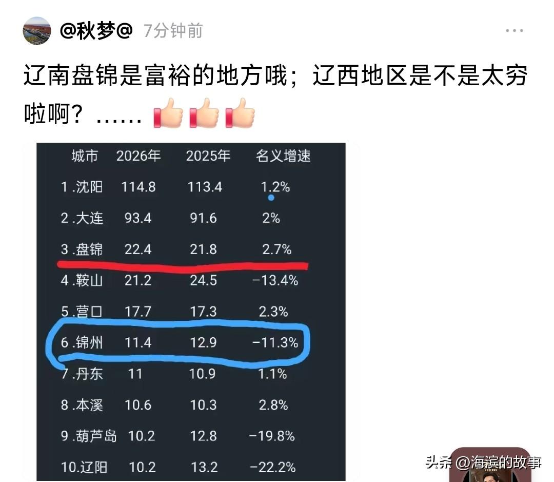 万万没想到,有些盘锦人竟然有这样想法?辽西怎么了,归属辽西就穷吗?盘锦市到底是辽南还是辽西,这点很重要啊,总感觉这话在一个辽西人说出来有种崇洋媚外的感觉,我查了一下历史,盘锦确实归属辽西这点没争议。 辽西的说法主要是指辽河以西,辽河干流从北向南流,穿过盘锦境内盘锦市区、双台子区、兴隆台区全都在辽河西侧,大洼区、辽东湾新区也大部分在辽河以西,只有少量滩涂、河口地带在辽河以东,所以不管是地理划分还是官方行政划分,盘锦都属于辽西城市,不是辽南。 再说说盘锦市的由来,盘锦是84年建市,因石油兴起,盘锦二字盘取自盘山,锦取自锦县,在清朝和民国时期,盘锦所在地叫盘山,一直归锦州府管辖,可以说和锦州渊源很深。建国初期,盘锦也属于锦州专区,所以老辈人常觉得盘锦和锦州是一家。 但到了1958年之后,行政区划调整,盘锦正式划归营口市管理。1975年,盘锦地区又再次并入营口,成为营口下辖的县。84年以盘山县为主体单独立市,这有点和葫芦岛类似,但不同的事很多盘锦人对营口的执念不大,而且营口属于辽南,行政区域不同。 这几年盘锦市由于石油经济带动确实GDP很高,人口也不多,但不代表整体水平就比辽西其他城市好,相反由于立市比较晚,缺乏底蕴,除了经济其他方面真不如那几个城市,朋友们觉得呢?盘锦布局改造 盘锦宜居 盘锦人口 盘锦营口同城化 盘锦问题 盘锦经济 盘锦全景