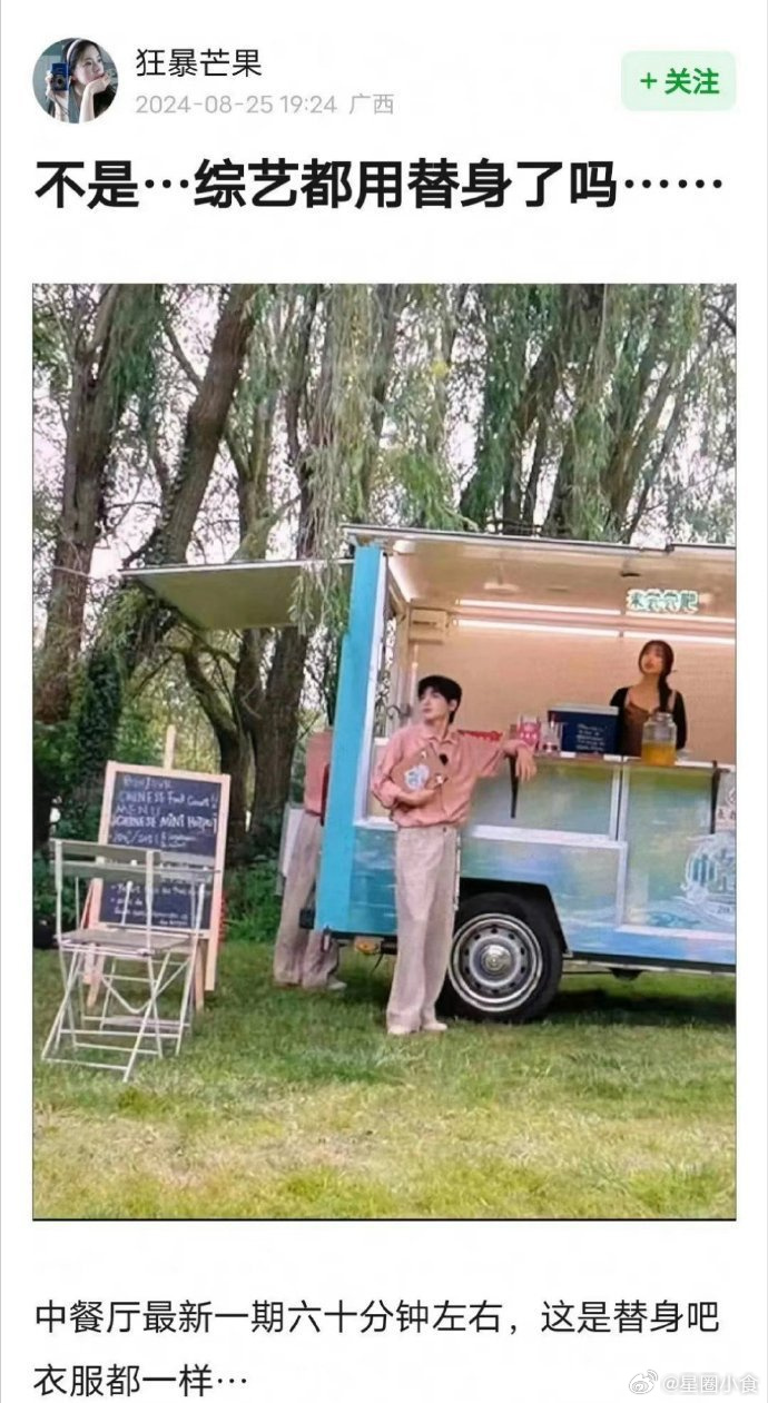 给哥乐一个 3 2026-03-08 23:21 替身怎么了?替身不是人吗?替身不应该挣钱吗?明星也需要休息呀?反正我不看综艺 thomarv 回复 03-09 07:59 吐槽大会都用替身了。大咖和他朋友们王晶那张,发现两个王晶,一个王晶在吐槽,另一个王晶在看。 thomarv 回复 03-09 08:00