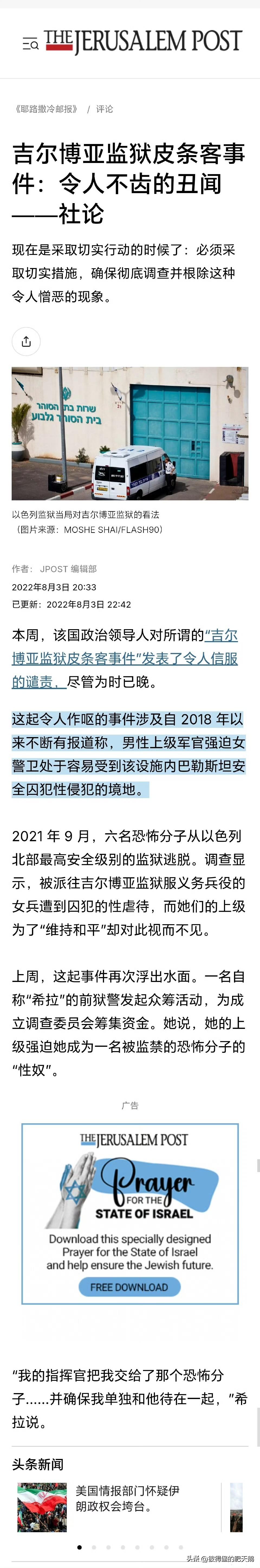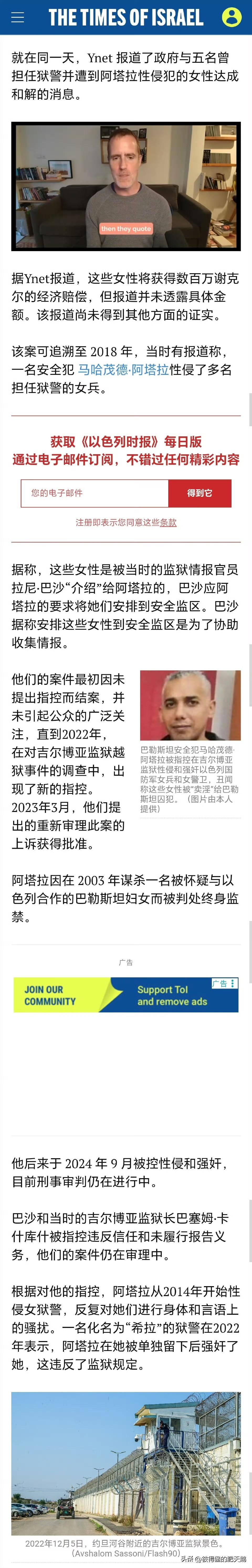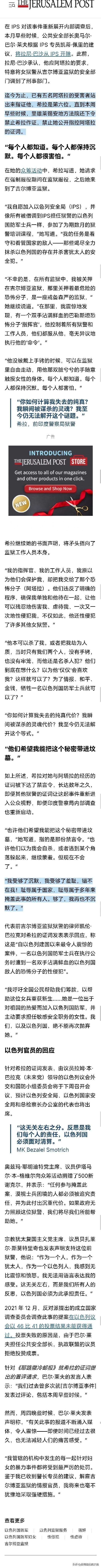 【以色列国防军多名女兵被男上司送给巴勒斯坦男囚强奸性虐】——2022年,受害女兵希拉为成立调查委员会发起众筹。她指控,她的男上司强迫她成为一名被监禁恐怖分子的"性奴"。 她写到:"我自愿加入以色列安全局(IPS),并像所有被借调到IPS担任狱警的以色列国防军士兵一样,我的任务是看管国家的敌人。" “我的指挥官、我原以为他们会保护我,他们却把我交给了那个恐怖分子。他们违反了明确的程序,确保我单独和他待在一起,让他可以残忍地伤害我、虐待我、一次又一次地性侵犯我,不仅如此,他还性侵犯了许多其他女狱警。" “他们到底在想什么?为了情报、和平、 金钱,牺牲一名以色列国防军士兵就可以了?" "每个人都知道。每个人都保持沉默。每个人都很害怕。"希拉与该男囚经历的证词被下达了禁言令长达数年之久, 即便其他狱警的证词让这起事件重新进入公众视野。 "也许他们希望我能把这个秘密带进坟墓,"她写道,指的是那份禁言令。"也许他们以为我会自杀,或者逃到某个角落躲起来,继续蒙羞。但现在不会了。" “我受够了沉默,我受够了羞耻,错不在我!耻辱属于国家,耻辱属于多年来掩盖此事的所有人。够了,我再也不沉默了。" 当时已有五名受害者站出来指证,希拉是第六位。 “这不仅仅是恐怖分子和狱警的故事。事情远比这复杂得多,是谁允许他在四年多的时间里肆意猥亵、袭击和强奸女狱警?”希拉质问道。 ——一个送女兵给男囚当“性奴”,一个开萝莉岛淫窟,@以色列驻华使馆 @美国驻华大使馆 俩变态父子一丘之貉。 .