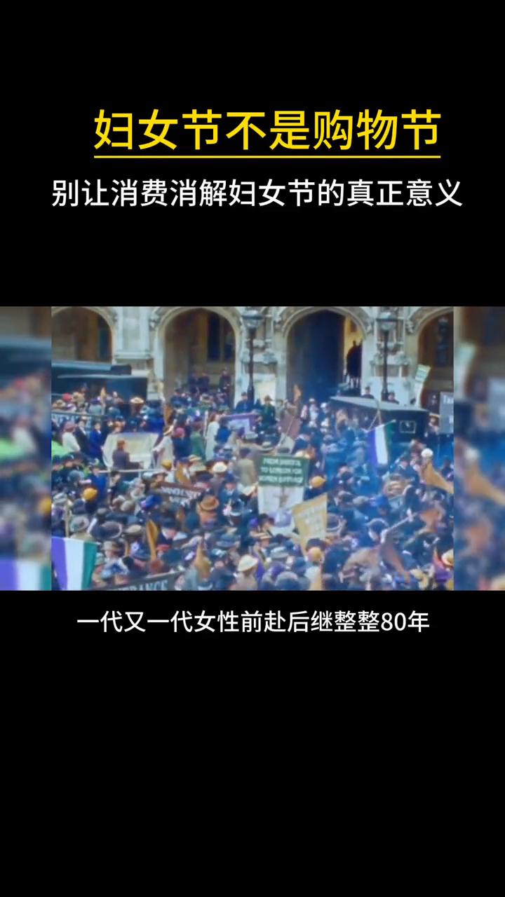 妇女节不是购物节,别让消费消解妇女节的真正意义。 三八妇女节从来不是什么购物节,也不是女神节,她是为了纪念女性,为了争取平等与尊严奋力抗争换来的胜利之日。 回望100多年前女性的处境,是如今的我们难以想象的艰难。没有穿衣自由,一举一动都被束缚,被当成妥妥的生育机器。大多数人连赚钱的权利都没有,哪怕有一小部分女工和男工干着一样的活,熬过一样漫长的十六七个小时,拿到的报酬却不及男工的一半。 她们赚的每一分血汗钱都要悉数交给家里的男丁,没有财产所有权,没有投票权,不能参与任何公共事务,甚至连出入公共场所都要被百般限制。 直到1908年3月8日,一群勇敢的女工毅然走上街头,举行大规模的罢工与示威游戏。她们大声呐喊,只为争取一份平等,一份尊重,一份本该属于自己的权利。 抗争的路上有牺牲,有无数不为人知的艰难,但没有一个人退缩。一代又一代女性前赴后继整整80年,才换来了我们今天拥有的自由与地位。直到现在,我才真正看懂妇字的身影。女字旁边是一座座压在女性身上的成见大山,更是一代代女性拼尽全力一座又一座推倒的不屈大山。 这份自由,这份平等,这份被尊重的权利,是无数先辈用热血和坚守换来的。愿每一位当代女性都能铭记这份艰难与坚守,珍惜眼前这来之不易的幸福。愿我们都能看清节日的本质,不被商家的消费现金裹挟。