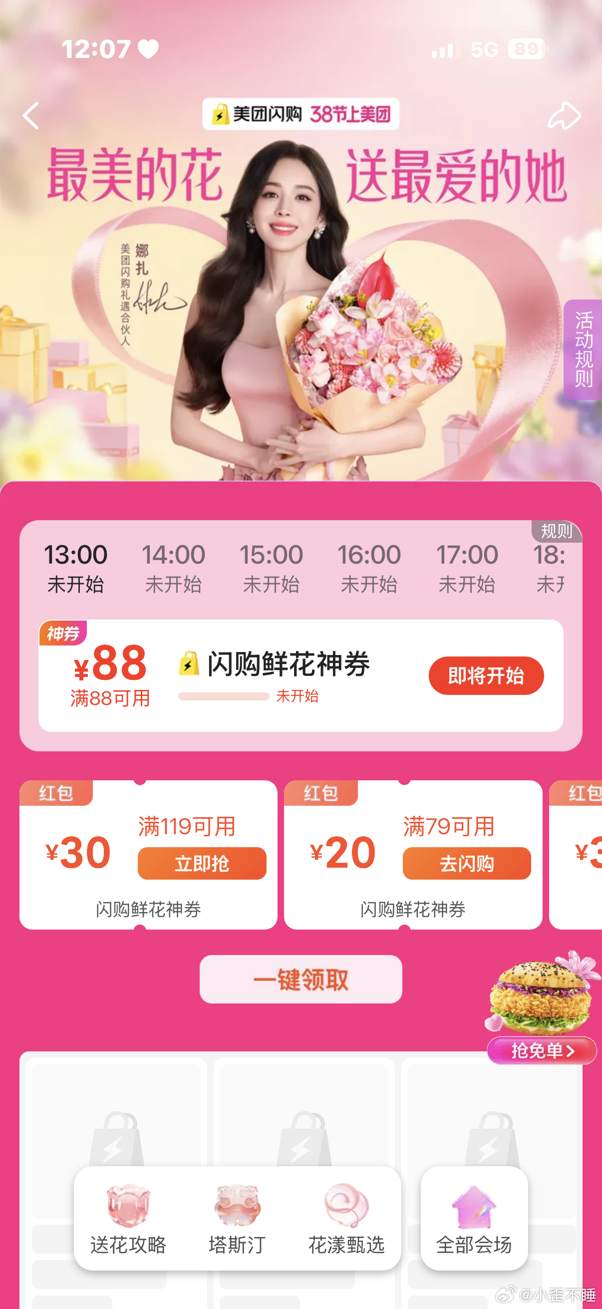 娜扎喊你来美团闪购过38这个开屏美我一大跳!🌸🎀💗!