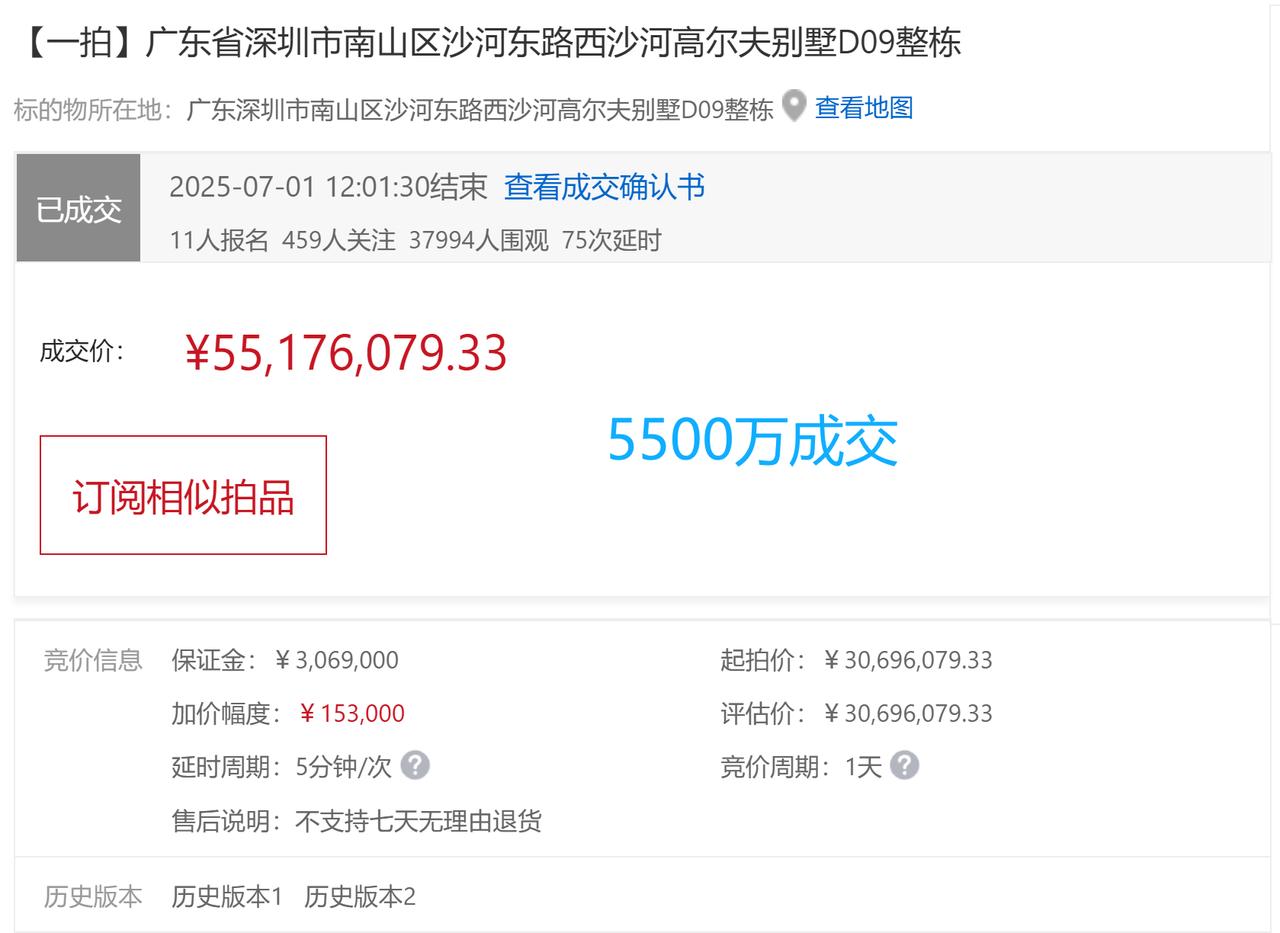 沙河高尔夫临湖别墅2.5折拍卖,位置好/环境好/带花园/超高使用面积,单价7.2万~ 沙河高尔夫别墅位于南山红树湾片区沙河高尔夫球场里面,小区总共有63栋,别墅分A/B/C/D/E五区,其中AB区都是独栋别墅,CDE区是双拼别墅。其中ABCD区是临湖,E区靠沙河东路~ 沙河高尔夫别墅地理位置特别优越,环境极好,位于超级总部基地西面,深圳湾公园北面。 小区周边银行、超市、学校、医院、体育馆等配套近在咫尺。 近期在拍的是C区的双拼别墅,产证266平,上下三层,带前后花园,临湖,超高使用面积现在起拍价只要1923万,2.5折拍卖,南山周边的买家可以看过来~ 交通:5分钟可上滨海大道/深南大道主干道;1.1公里可到2/8号线红树湾地铁站;交通很方便 购物:600米到京基百纳广场;1公里可到深圳湾睿印RAIL IN;周边有深圳湾万象城和海岸城等多个购物中心 休闲:小区位于沙河高尔夫球场里面;1.2公里可到深圳湾公园;3公里可到深圳湾体育中心 学校:800米到滨海实验小学;距离南山实验白石洲学校1.3公里 沙河高尔夫别墅C19栋 面积:265.94㎡ 起拍价:1923万 市场价:~ 学校:海滨实验小学,南山实验白石洲学校 双拼别墅,上下三层,带前后花园,临湖别墅