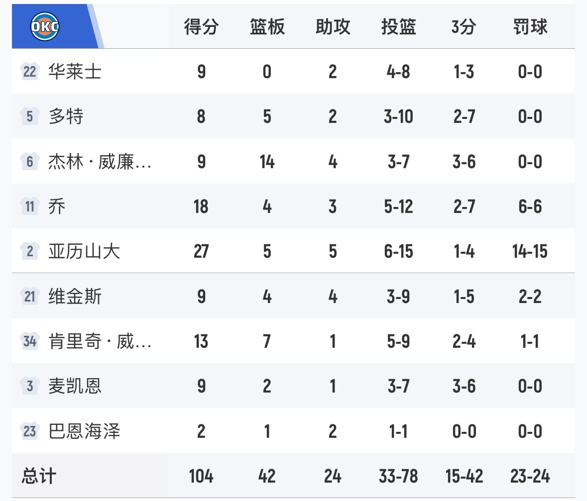 雷霆104-97击败勇士,获得5连胜,最近9场比赛8胜1负。勇士vs雷霆