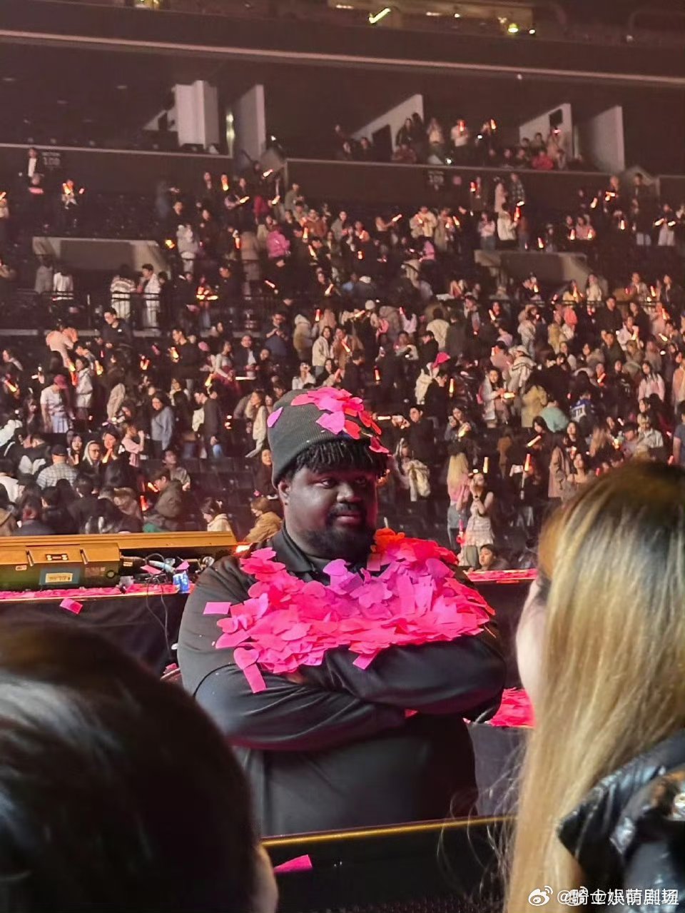 汪苏泷保镖的世界真变成粉红色了汪苏泷自带粉色结界,连严肃保镖都被同化。黑皮配粉红的奇妙组合,甜妹气质藏不住,这反差效果也太搞笑了吧