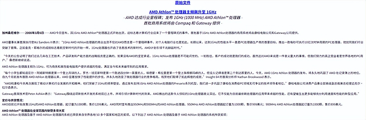 有意思的,这款处理器比Pentium III 1GHz处理器早发了两天,打了Intel个措手不及。 AMD在当年的新闻稿中自信表示:“1GHz AMD Athlon处理器正式开始出货,这标志着计算机行业迎来了一个里程碑式的事件。