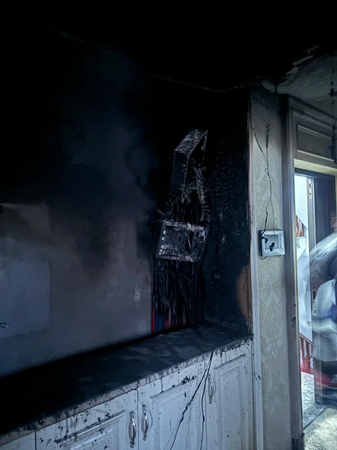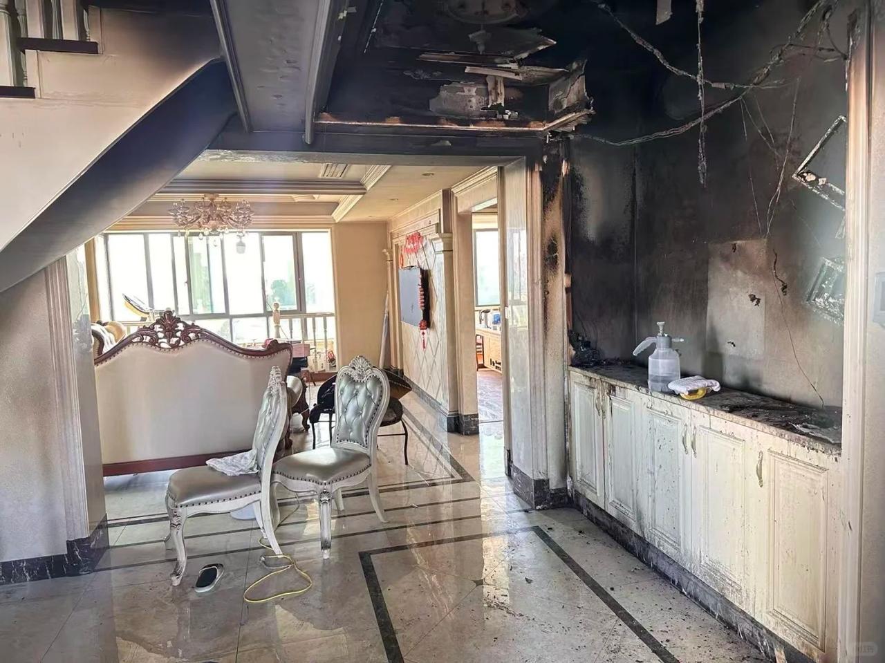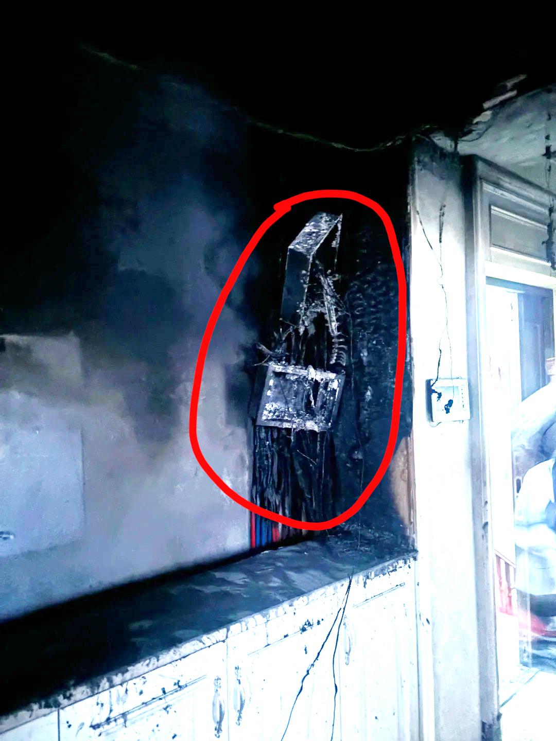 初二连夜走人后……婆婆家着火了,吓出冷汗 刚看到的,给所有要装修的朋友提个醒 网友春节回婆家,因生活理念不同,初二就回自己家了,初三婆家就失火了。 网友睡过的房间也受到了波及。 据网友说万幸的是,失火时全家外出游玩,窗户做的很好,密闭很严实,氧气耗尽后自己变小很多,被人发现后用水浇灭的。 其实我仔细看了网友发的照片,并不是这样,是因为燃烧位置那里的可燃物很少,就是第四张图我画圆圈的地方。 对的,你没看错,就是电路做的不规范导致失火,所以整个房间内虽然被熏的很黑,但是没有引燃其它物品,这才导致火势没有扩大。 还有一个原因就是业主家经济条件可以,购买的线管和电线有一定的阻燃性,我专门调亮了第四张图,可以看到下面红蓝色线管烧了一点就熄灭了,这就是材料带来的安全性。 那是什么燃烧了呢?估计是电箱里面的控制开关和电箱附近的一点物品。 应该是施工不规范,功率计算错误导致的,等于说好材料没有做出好活,是人祸。 所以说装修的时候,水电施工和材料真不能省,材料一定要买阻燃的,真有作用,水电工一定要用有经验的,这样才不会导致这种因为功率算错导致失火。