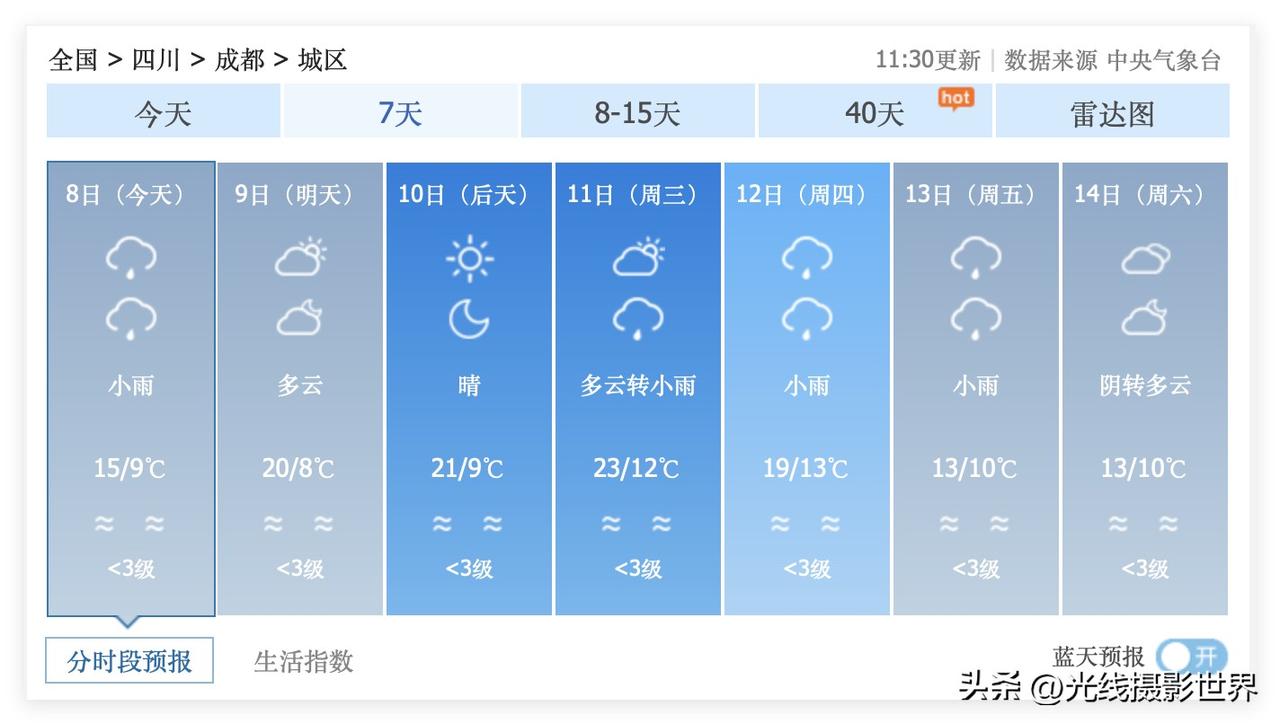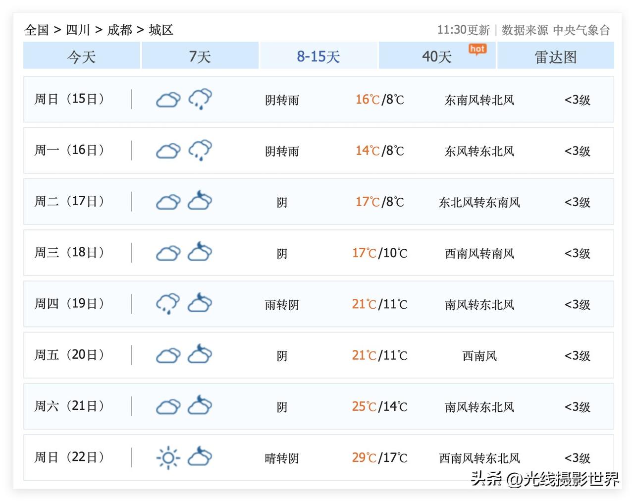 哎!3月8日到21日,四川省成都市,可能只有3月10日和11日这两天的天气最好了!中央气象台以及苹果iphone手机自带天气预报显示……未来10天半个月,成都可能只有两天出大太阳…… 成都,重庆,贵阳,川渝贵……未来10天,可能3月10日和11日这两天的天气,好到爆炸! 3月10日和11日,重庆人,成都人,贵阳人,一定要好好珍惜太阳,一定要好好珍惜春季赏花! 贵阳平坝农场的樱花,3月5日6日就已经全部盛开了……可是这周末贵阳降雨降温……如果3月10日11日不去看……那就可能真的要再等一年了!摄影畅销书作家曾兰老师,真心提醒大家,一定要珍惜花期和好天气啊! 贵阳花溪十里河滩的油菜花,桃花…… 好吧,成都及周边,当然也有很多赏花好去处,开往春天的高铁的油菜花……龙泉驿的桃花……大家一定要珍惜3月10日和11日的好到爆炸的好天气,错过,也许再等一年……当然,川西的春天来得晚,错过成都,川A大军还可以慢慢期待川西,慢慢期待西藏林芝的桃花,慢慢等待九寨沟的山桃花盛开……光线摄影学院曾兰老师,非常羡慕成都人和川A大军,哎,成都人的口头禅,川西秒杀一切! 嗯,3月10日和11日,重庆桃花李花梨花,估计都是最后的疯狂了……今年春天来得太早了!其实,前几天,重庆桃花已经盛开,重庆李花已经盛开,重庆梨花已经盛开……3月10日和11日,其实已经接近尾声……哎! 北京大学出版社签约作者曾兰老师,最近十多年,一直在中国西南做勤恳的小蜜蜂……最懂得珍惜花期和好天气啦! 幸好,幸亏,春节假期期间,今日头条大V曾兰老师,已经拍摄了重庆开往春天的地铁,轻轨2号线佛图关站,轻轨3号线巴南万达广场站,地铁6号线康庄站……2026年春天的花花们,醒来的太早了!川渝贵的各种花花们,普遍提前了10-20天开花,真是让人措手不及啊!