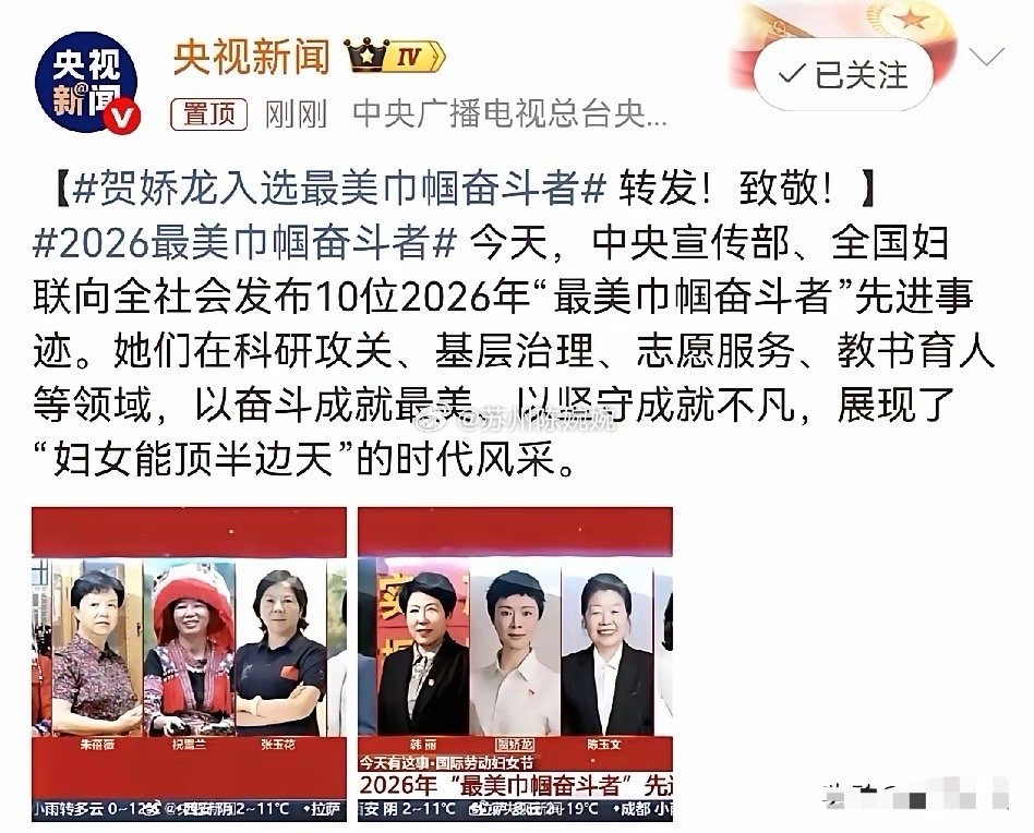 贺娇龙,冲上热搜!3月8日,离世53天的贺娇龙,突然冲上热搜,这次的消息终于堵住了所有流言,中央宣传部、全国妇联正式发布2026年“最美巾帼奋斗者”先进事迹,一共10位榜样上榜,其中就有大家熟悉的贺娇龙,全网纷纷转发致敬。很多人认识贺娇龙,是因为那段雪地红衣策马的视频。她没有把流量当光环,而是全部用在了助农和乡村振兴上。一路走来,她顶着质疑、扛着压力、忍着委屈,把全部精力放在助农、带货、帮扶边疆群众上。她零佣金直播、自费奔波、把流量全部用在乡村振兴上,用实打实的业绩带动增收、造福一方。可即便如此,仍有不怀好意的声音抹黑她、曲解她、消耗她。如今,中央宣传部、全国妇联用最权威的方式为她正名,用最庄重的荣誉致敬她的坚守与付出。那些曾经的谣言、非议、指责,在这份沉甸甸的认可面前,全部不攻自破。她用一生践行初心,用行动证明担当。此刻,所有清白归位,所有赞誉抵达,所有委屈都有了交代。愿娇龙同志安息,愿这世间再无恶意中伤,愿每一份真心付出,都能被温柔以待、被光明照亮。