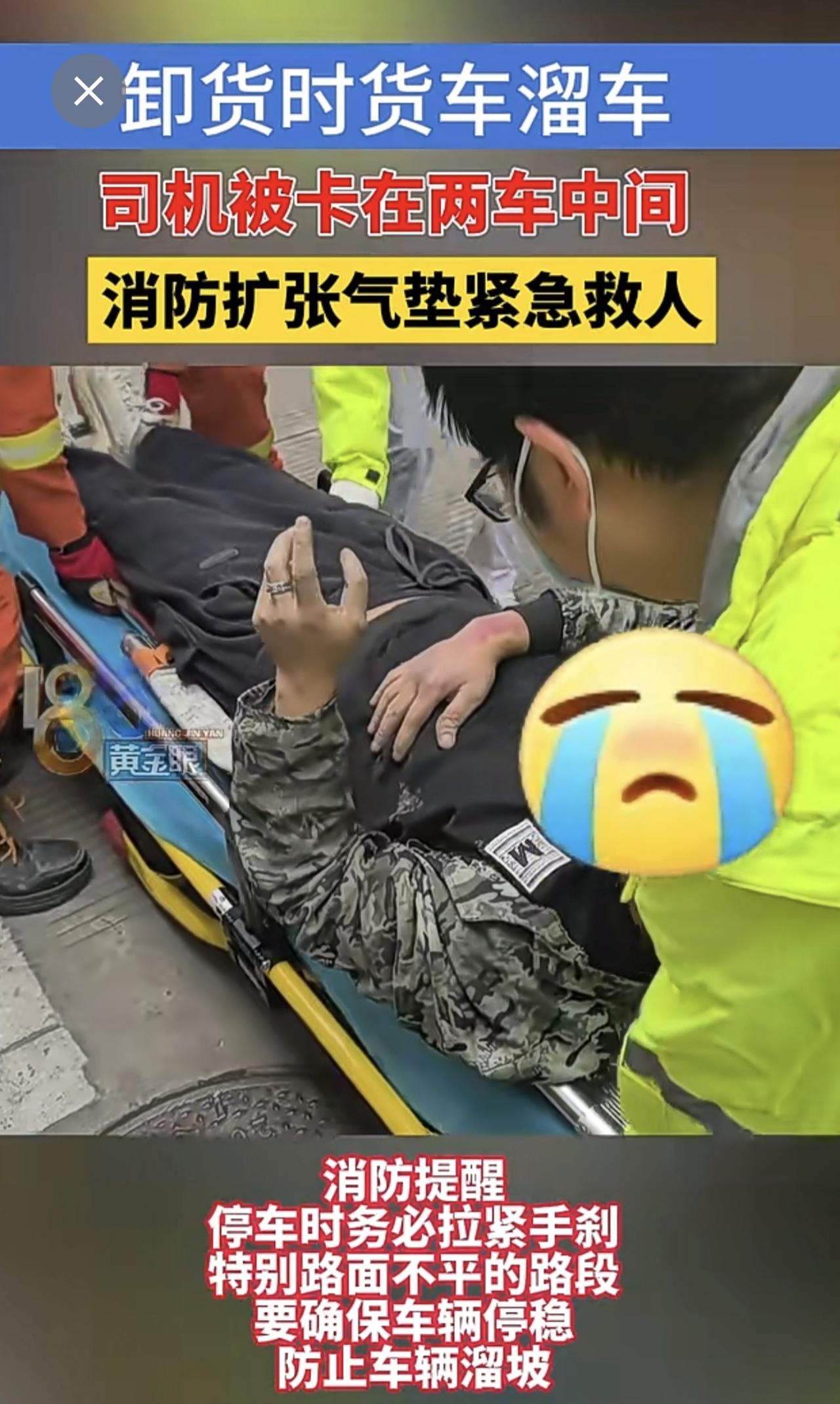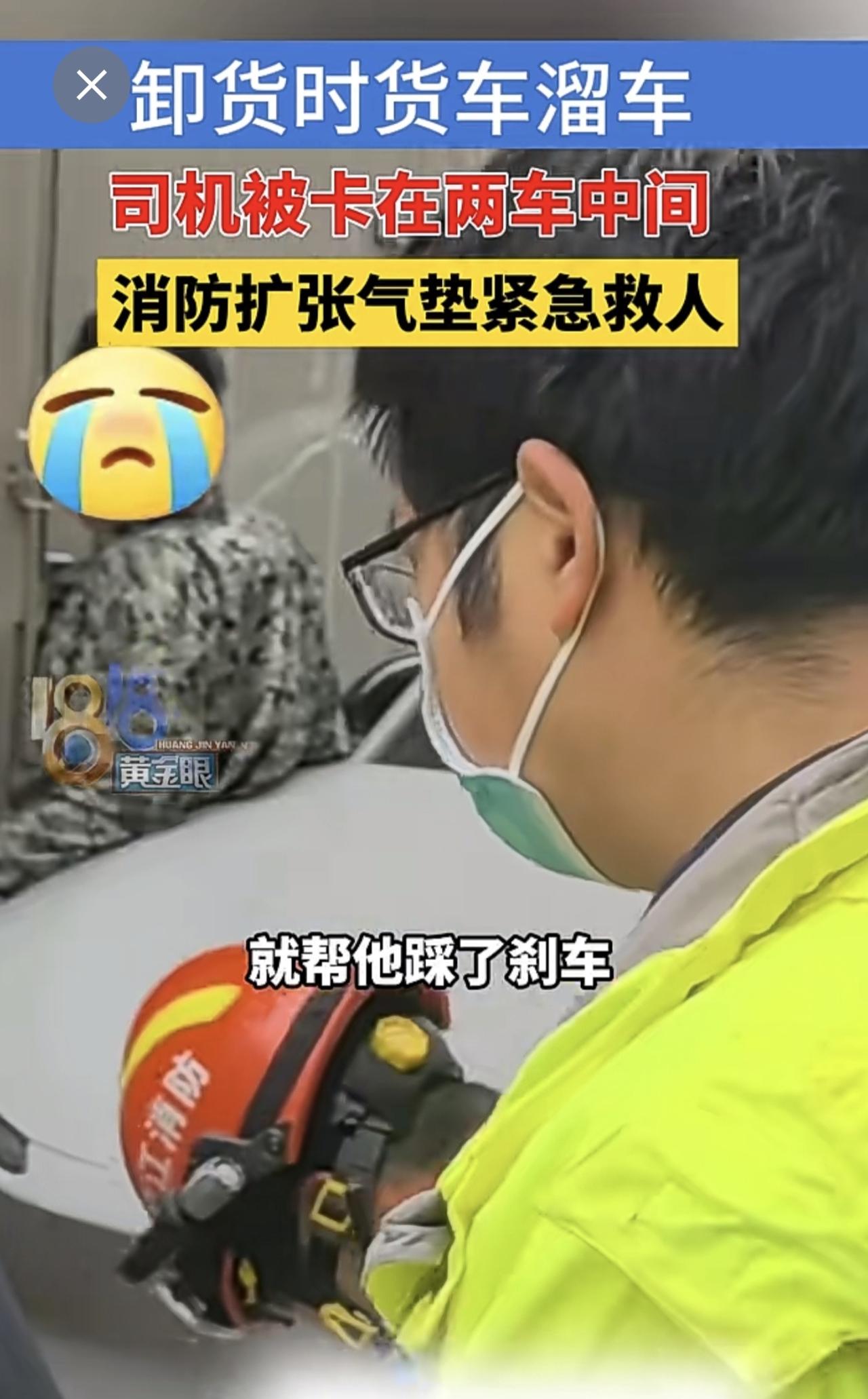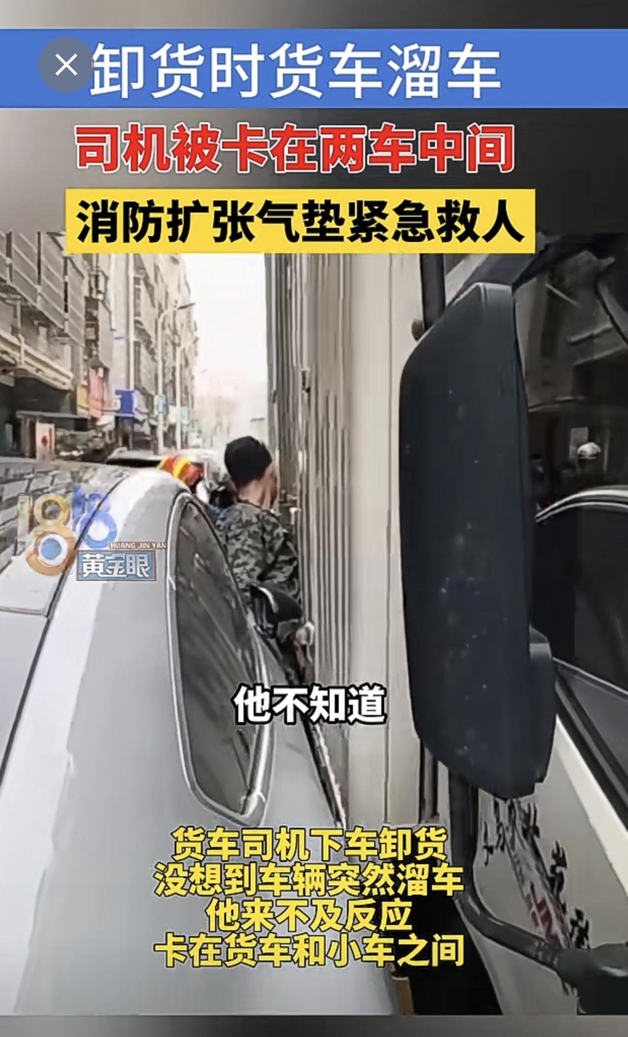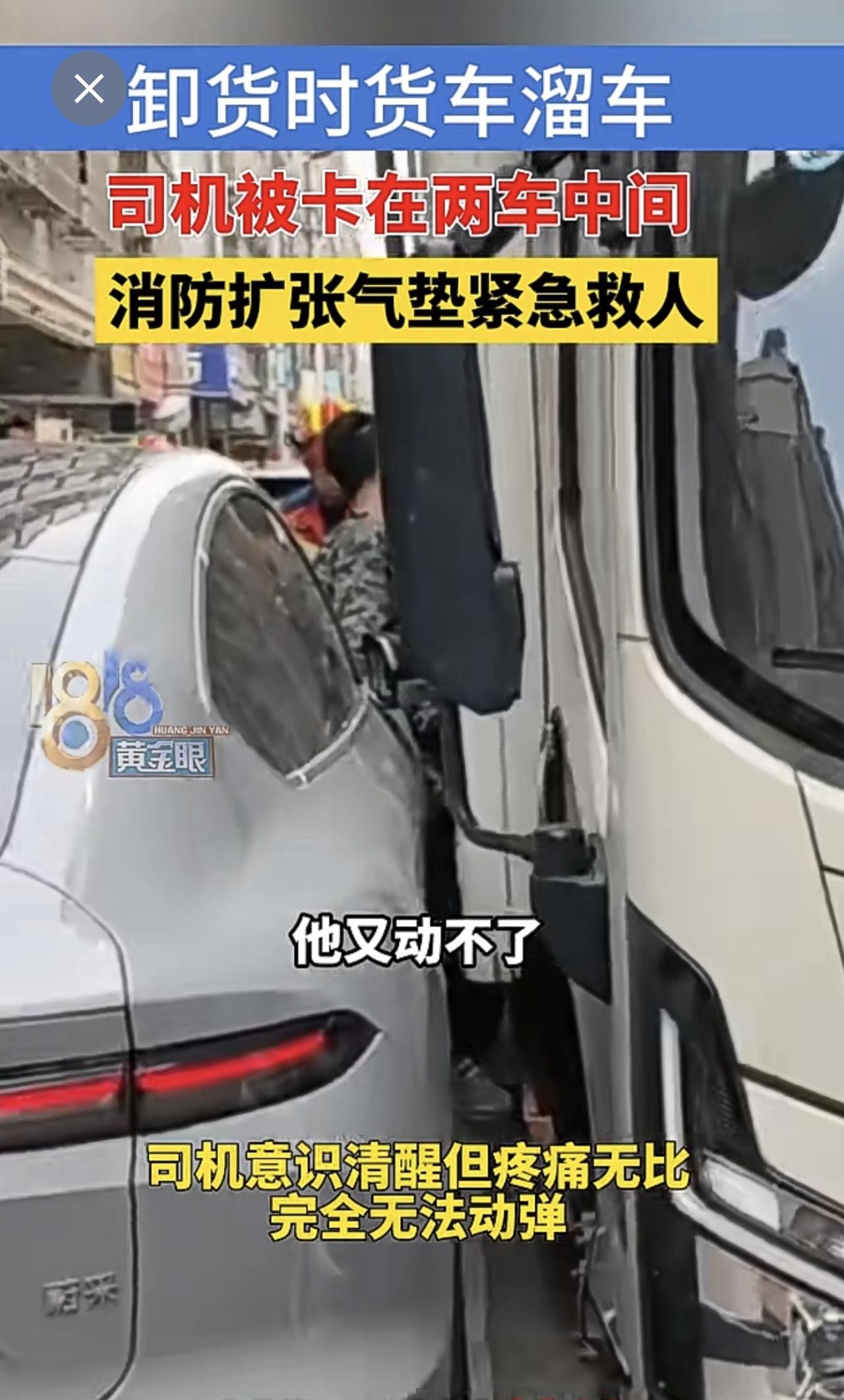 卸货时货车溜车,司机被卡在两车中间,消防扩张气垫紧急救人(供稿:义乌消防)