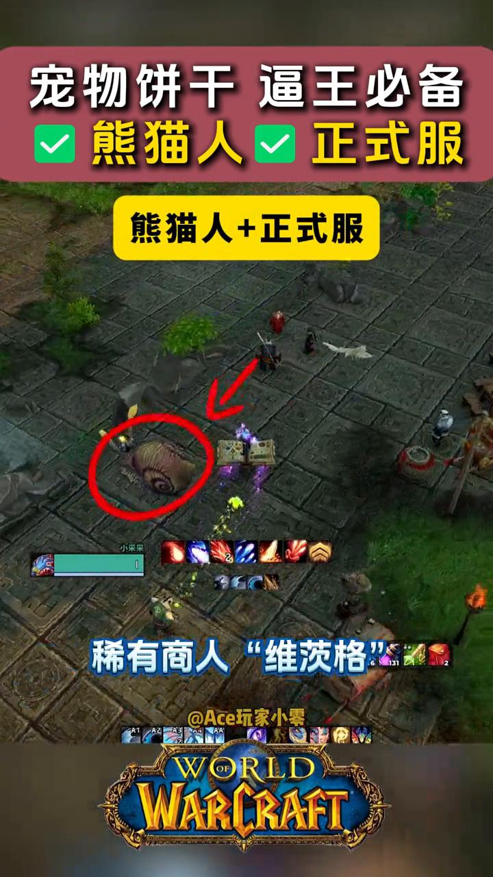 宠物饼干逼王必备:熊猫人正式服。 后台好多小伙伴都在问:你的小宠物怎么那么大?其实超简单,喂它一个"魔法宠物饼干",体型立马翻倍,可爱也加倍。 ·正式服可以去破碎群岛达拉然,坐标(59,39),找宠物对战大师,花5个宠物币就能换25个饼干。 ·熊猫人怀旧服就有点看脸了,得跑到潘达利亚的永恒岛,在天神庭院外围四个点蹲一个骑着大蜗牛的稀有商人"维茨格,只要花500个永恒铸币就能换25个饼干。它大概3小时左右刷一次,一次只待20分钟,能不能遇上全凭缘分。 宠物喂完饼干后,只要不主动解散它,效果就一直都在。这个饼干还是相当划算的。
