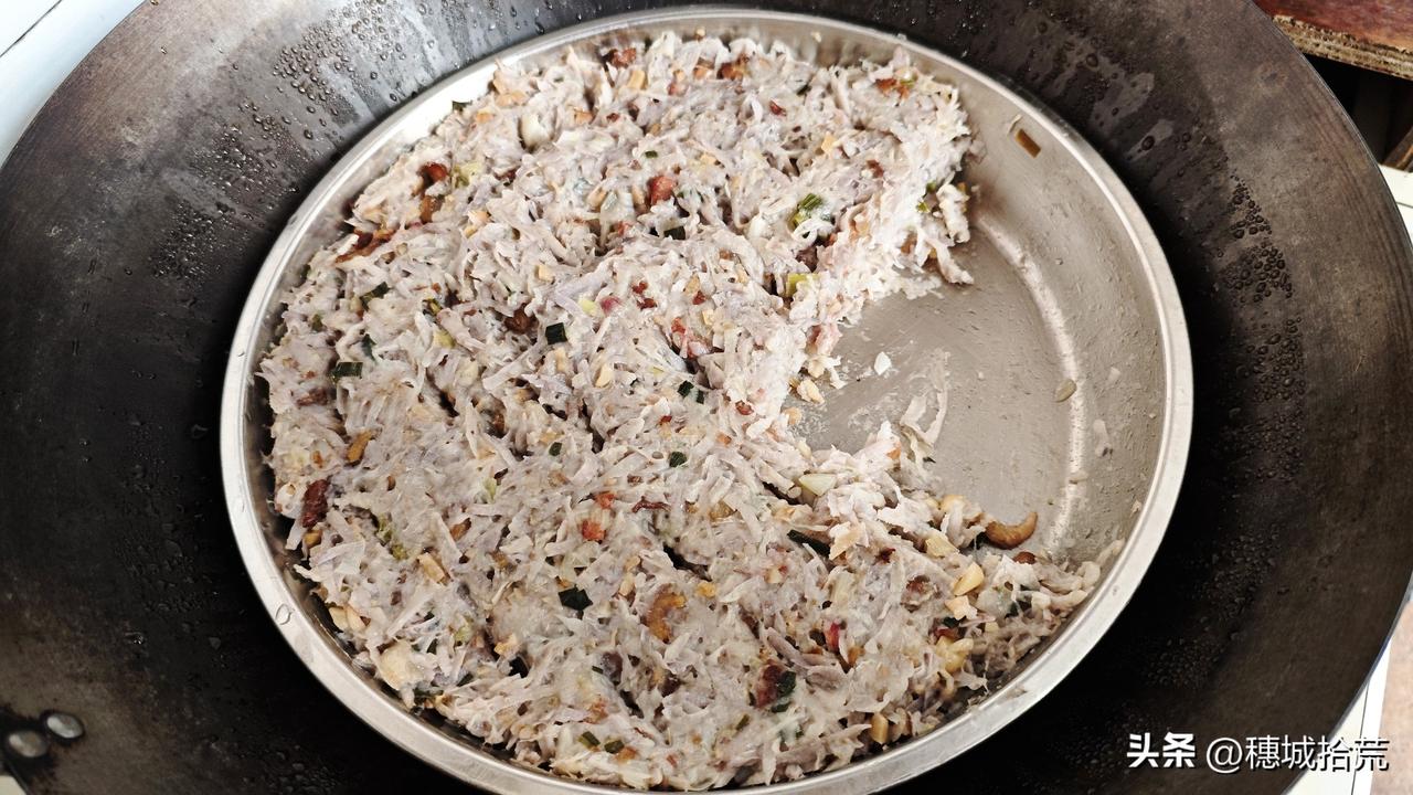从小吃的家庭芋头萝卜糕,跟酒楼的很大差别,酒楼的粉多,外形优美,家里的料足,比较粗犷。 绝对是家里做的好!撇去情怀,真材实料一点已经胜于万千了。 我不知道酒楼的芋头糕怎么做,家里的喔就一清二楚,三个字:功夫多! 芋头、白萝卜、腊肉、腊肠、虾米、葱、花生,辅料沾米粉,有些家里还会加点炒香的芝麻。 抛去准备材料的一大堆麻烦的“刀斧功夫”,先炒腊肉、腊肠、虾米、葱;再炒芋头萝卜,再捞粉,再将材料混合,放入原盘,准备功夫方算做完。 最后一步功夫才是蒸!至于蒸多久可能是老妈才知道了。以前用禾草灶,她总叫我不说话,更不能揭锅盖,怕翻生。如今想来只是怕小孩事多手多罢了。 这又是广州本地最喜爱的传统节日美食,可惜“新新抱”(媳妇)没几个传承下来。家乡美食 芋头糕 传统美食 广州