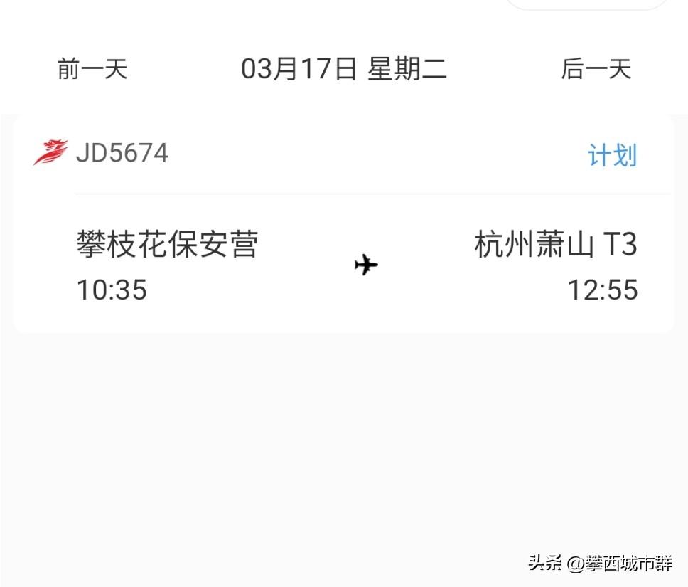 攀枝花-杭州航线预计3月17日开通! 首都航空执飞 攀枝花-杭州 10:35-12:55 杭州-攀枝花 06:50-9:50 浙江是经济大省,也是全国唯一省级共同富裕实验区。该条航线开通后,将极大方便攀枝花前往江浙地区,更加方便两个共富区的交往和经济合作。