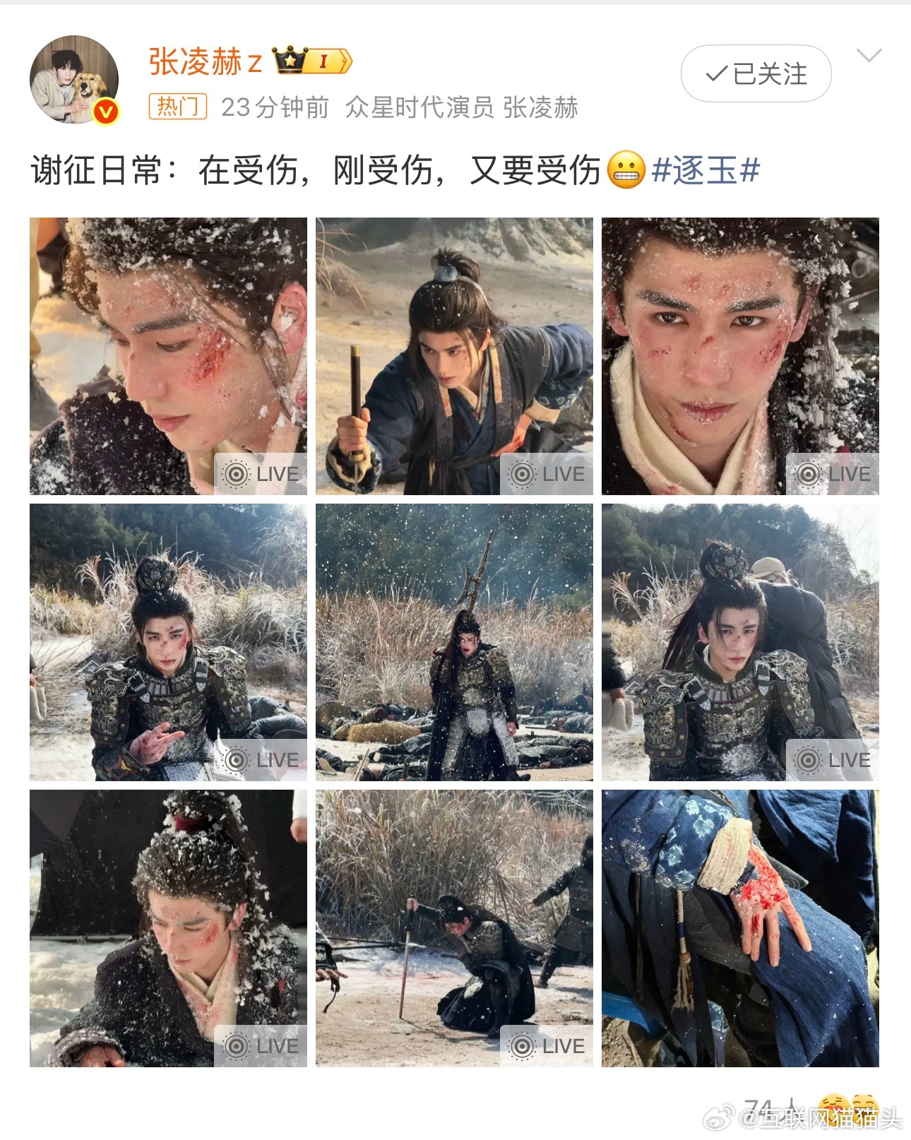 张凌赫晒谢征日常谢征日常:在受伤,刚受伤,又要受伤😬张凌赫本人在线吐槽,破碎感拉满!落难侯爷美强惨人设焊死,病弱外表下藏着战神风骨,越惨越让人上头✨