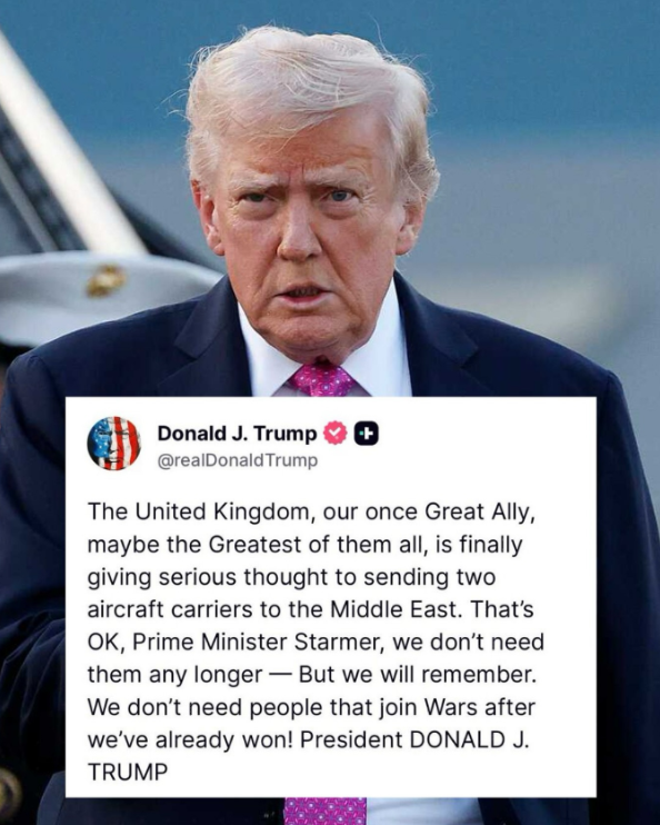 搞笑的一幕出现了!美、伊冲突打得正酣,本来想置身事外的英国在此时突然跳出来想刷波存在感,准备把自家的航母派到中东,结果被特朗普一顿“阴阳”,直接被怼到哑口无言,主打一个大型社死现场! 事情是这样的:美国和以色列联手捶伊朗,打了快有十天了,英国人看到现在的局势好像有点明朗了,终于磨磨蹭蹭表态——英国国防部宣布:自家海军“威尔士亲王”号航母已进入高度戒备状态,随时准备支援美国,同时他们还松口允许美国使用自家在中东的两个军事基地,一副“盟友我来帮你了”的积极模样。 本以为此番积极的举动能换来特朗普的夸赞,结果人家反手就在社交平台上开怼了,阴阳话术拉满: 英国,我们曾经的伟大盟友,或许是所有盟友中最伟大的,你们终于开始认真考虑向中东派遣航空母舰了; 不过没关系,斯塔默首相,我们如今不再需要啦,但我会记住你们的,我们不需要那些在我们已经赢得战争之后才加入战争的人。 这波内涵真可谓是“杀人诛心”呐!“曾经的伟大盟友”的潜台词不就是“现在不行了”吗?合着英国忙前忙后,又是调航母、又是借基地,最后只换来了一句“不需要”,尴尬程度足以让斯塔默能在白金汉宫用脚抠到地下室了。 更损的是,特朗普还拿丘吉尔踩斯塔默,此前他就当着德国总理的面吐槽:我们现在面对的可不是温斯顿·丘吉尔!其言外之意就是“你斯塔默连丘吉尔的一根手指头都比不上”。 特朗普其实一直都很欣赏丘吉尔,去年他上任之后还在自己的办公室里安放了这位已故英国战时领导人的头像雕塑,在第一任期内他也是这么做的。 一边摆着丘吉尔的半身像装崇拜,一边把现任首相怼得抬不起头,特朗普这“双标”操作玩得是真溜! 其实英国也挺委屈的,斯塔默本来是不想掺和这件事的,毕竟当时整个欧洲都对美国发动的对伊战争持保留态度,而且本国国内有43%的人都觉得这场战争不正当,56%的人支持他一开始不借基地的决定,还有数千人上街抗议美国打伊朗的行为。 但现在的结果是两边都得罪了:不帮特朗普,怕被穿小鞋;帮了,又惹得国内民众不满,妥妥的两面背刺。 更搞笑的是,特朗普还不忘了翻旧账,吐槽斯塔默把查戈斯群岛还给了毛里求斯,骂人家“愚蠢至极”,哪怕后来自己改口说“理解”,这会儿也照样拿出来Diss。 合着英国想凑个热闹、表个忠心,不仅热脸贴了冷屁股,还被翻出了黑历史,主打一个得不偿失。 说来说去,英国就是太拎不清——人家特朗普打伊朗,自己国内都只有27%的人支持,你还上赶着凑数,结果被当众打脸,沦为了国际笑柄,只能说,蹭热度需谨慎,不然容易被“大佬”怼到没面子!特别是当这个“大佬”是特朗普的时候,一定要注意。