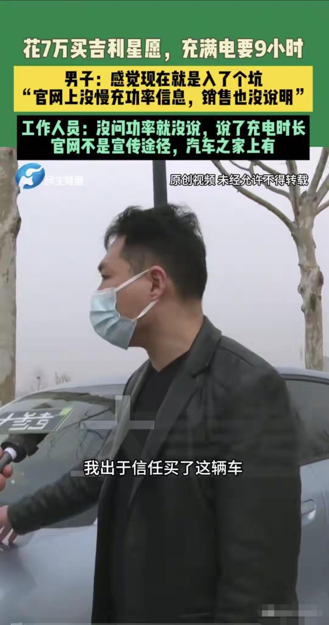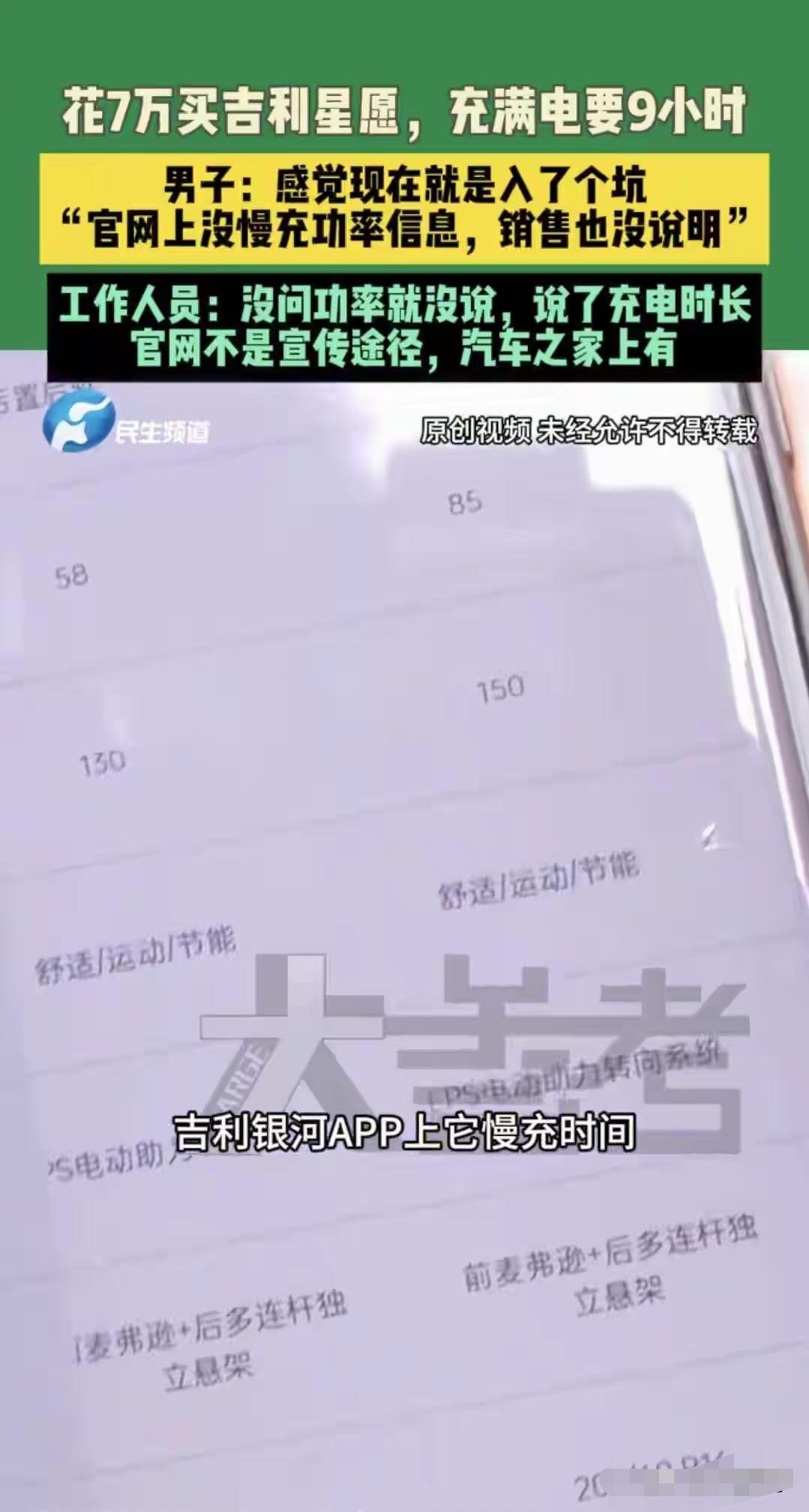男子花7万购入吉利星愿310km版,回家后发现慢充竟需9小时。该车车载慢充仅3.3kW,即便搭配7kW家充桩也无法提速。车主称购车时销售未明确说明,官网也未标注慢充参数,此事引发网友热议。大家认为,车企应如实公示关键配置,保障消费者知情权。
